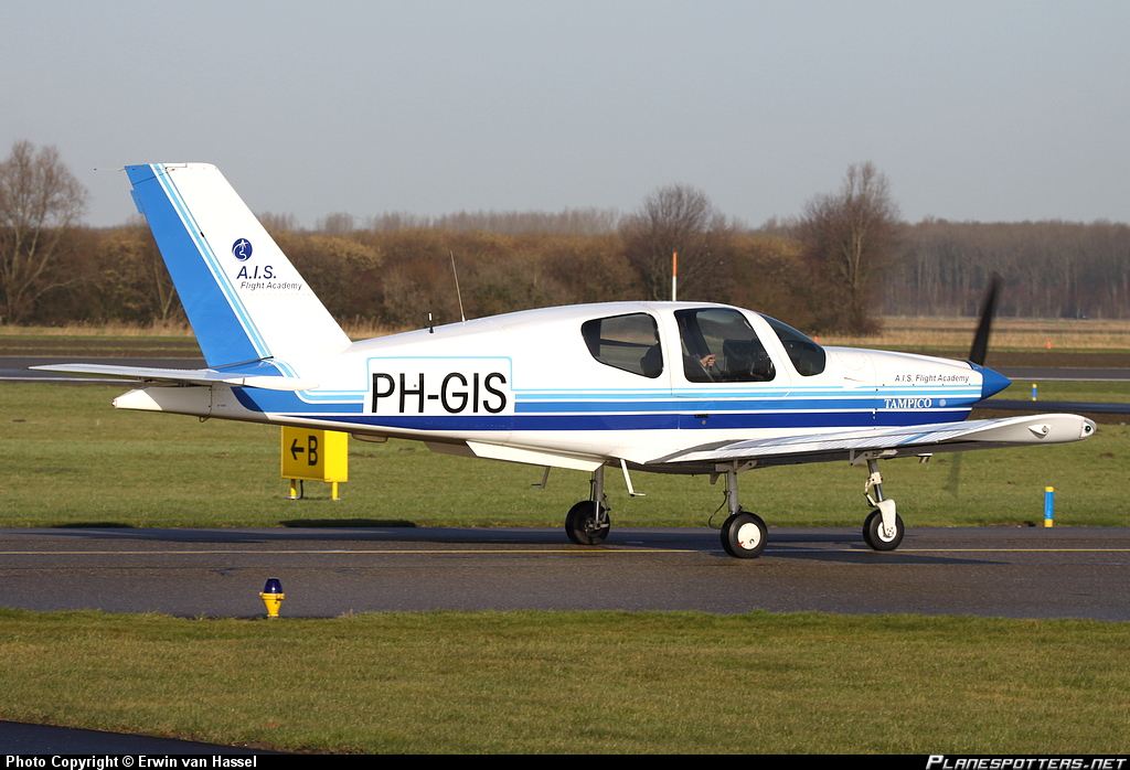 Socata has been active in the aerospace industry since 1911 as Morane-Saulnier. The name Socata has been adopted since 1966. Nowadays it is part of the Daher-Socata group which, in addition to its own aircraft, makes parts for Airbus. The Socata TB series was developed at the end of the seventies of last century as the successor to the successful Morane-Saulnier Rallye. In principle, all fuselages of this series are the similar,only the engine power and equipment differ. The TB-9 Tampico has a fixed landing gear and a Lycoming O-320-D2A engine of 160 hp. A.I.S Flight Academy offers commercial and private pilot training courses and has 9 Socata's TB-9 in its fleet.