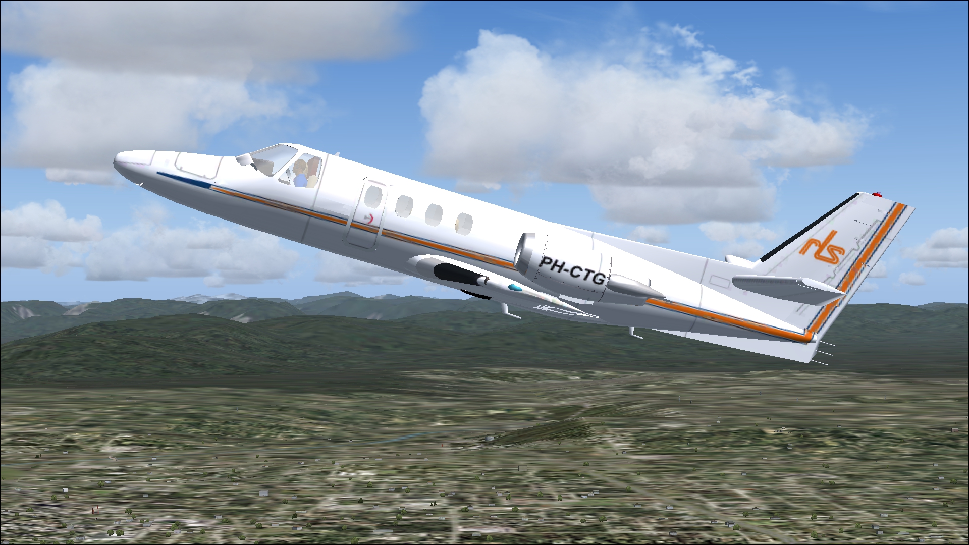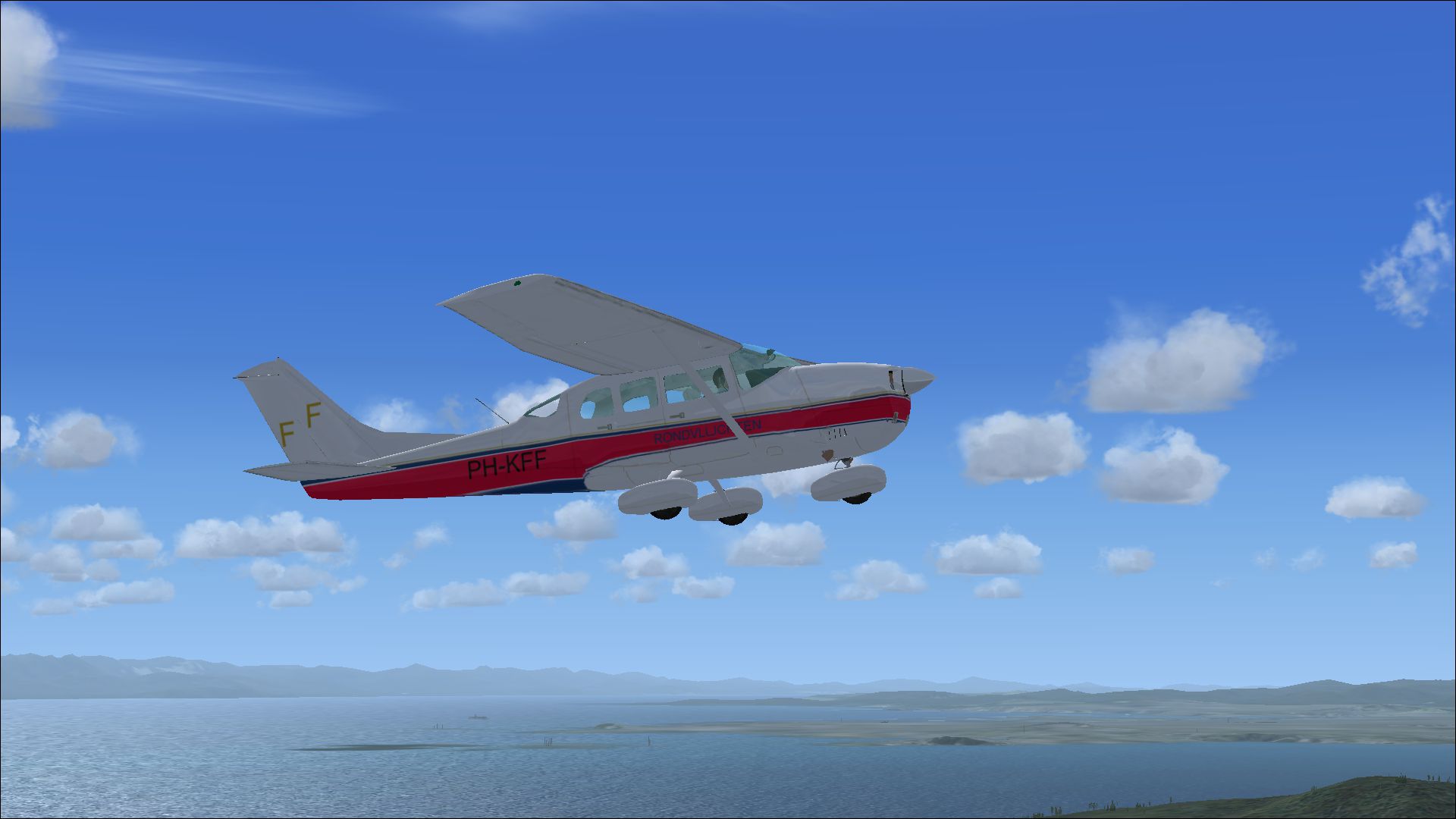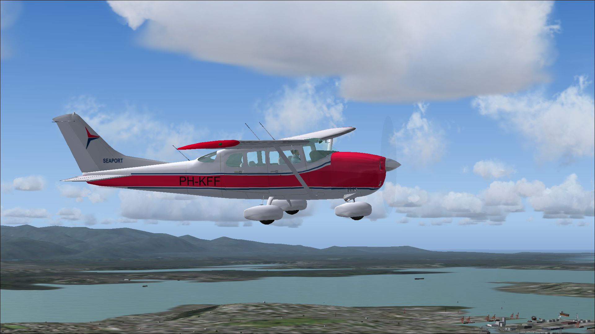 Flashband Flight was part of Nationaal Vliegtuig Beheer, The Hague.Its activities were pleasure flights and adhoc charters from Rotterdam Airport. During that period they flew with a Cessna P206 Super Skylane, three Dornier Do28D's and a Britten Norman BN-2A. The Islander PH-NVA was purchased for the Amsterdam-Middenzeeland-Lille service, which quickly turned out to be a flop in terms of control. In addition, an attempt has been made to run a weekly service between Rotterdam and the Dutch islands Ameland and Texel during a summer season. At the weekends it flew pleasure flights over Rotterdam. The PH-KFF was from 1969 till the end of 1974 part of its fleet. Flashband and Seaport did not succeed to built a profitable position on the market and stopped its activities. Unfortunately this repaint is not 100% correct because the model of Massimo Grassi and Fravin Guidee has a few limitations. Unfortunately I could not find another freeware model..