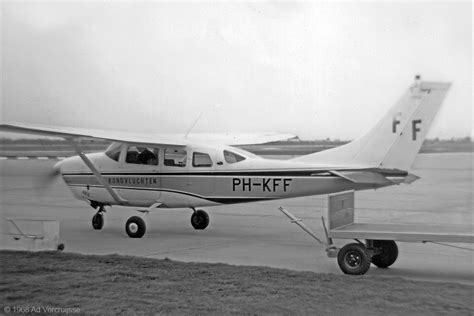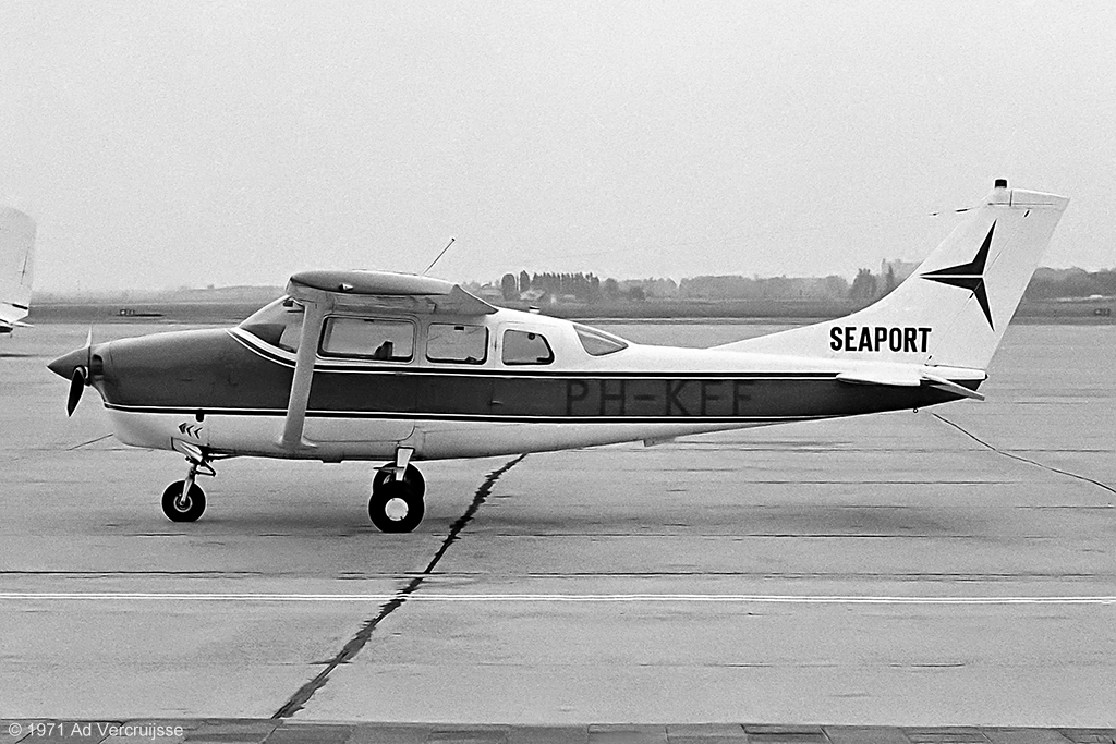 The Cessna 336 Skymaster initially flew in Februari 1961 and had fixed landing gear. 195 of this model were built. In February 1965 Cessna introduced the model 337 Super Skymaster. Larger, more powerful engines and a retractable landing gear. The Skymaster handles differently from a conventional twin-engine aircraft, primarily in that if an engine fails, the plane will not yaw toward that engine. Many variations have been built over the years. Different engine types, with and without a pressurized cabin, types for civil and military use. In total 2993 Skymasters are built, including 513 military variants. In 1982 the production in the US stopped but was continued by Reims Aviation in France.Reims built 172. The Dutch Police had two Skymasters had in its fleet. In addition to air observation of traffic situations, the aircraft were also used to check oil pollution in the North Sea and Wadden Sea. The PH-RPD was from October 1973 to July 1987 in the fleet of the Rijkspolitie.