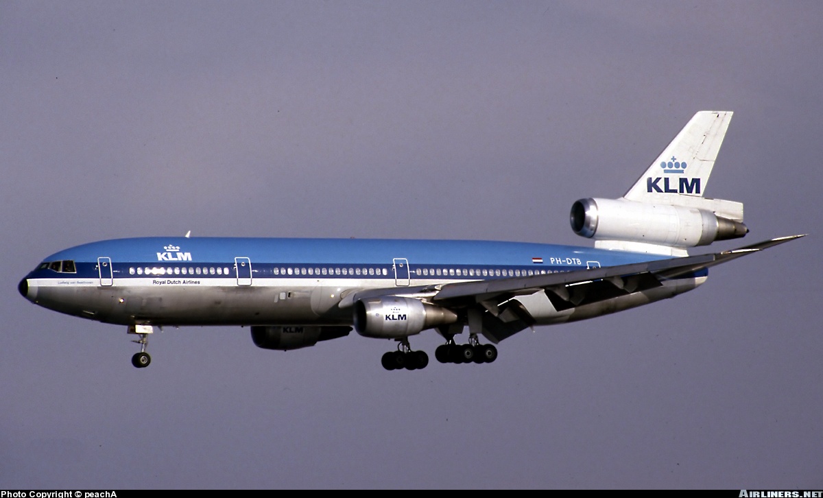 KLM has had 13 DC-10-30s in service from December 1972 to 1995. Some were leased to VIASA, PAL and Garuda or sold after a short time. Of the 14, KLM itself has had 5 in long-term service. The PH-DTB was sold to Northwest Airlines in 1995 and became N229NW. The DC-10 was replaced by the MD-11. The N237NW was owned by Northwest Airlines, which cooperated with KLM within Skyteam. One side of the aircraft had the Northwest livery while the other side had the livery of KLM.
