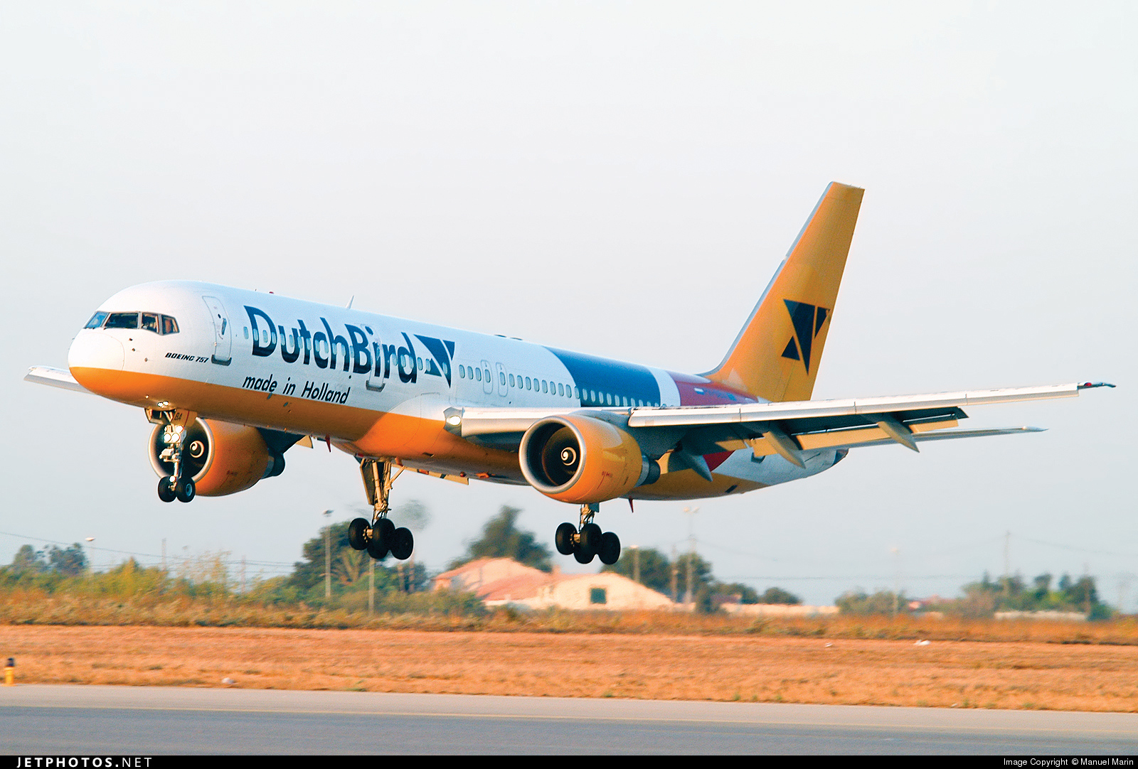 Dutchbird was founded in 2000 by touroperator Sudtours to compete with KLM subsidiaries Transavia and Martinair. DutchBird distinguished itself as an airline by the extensive service on board, and in its existence it won three times the prize for best Dutch charter airline. Nevertheless, DutchBird did not succeed in acquiring contracts from other Dutch touroperators and it continued to suffer losses. In the beginning of 2005, DutchBird went bankrupt. The fleet consisted of three Boeing 757-200 (PH-DBA, PH-DBB and PH-DBH, leased from Condor) and two Airbus A320 (PH-BMC and PH-BMD, former Sabena), used on holiday flights from Amsterdam to the Mediterranean, Egypt, Turkey, Gambia and the Canary Islands. The typical color scheme, the yellow belly with the red-white-blue, was due to the fact that the Boeings of Condor had a yellow belly. DutchBird added the red-white-blue, the colors of the Dutch flag.