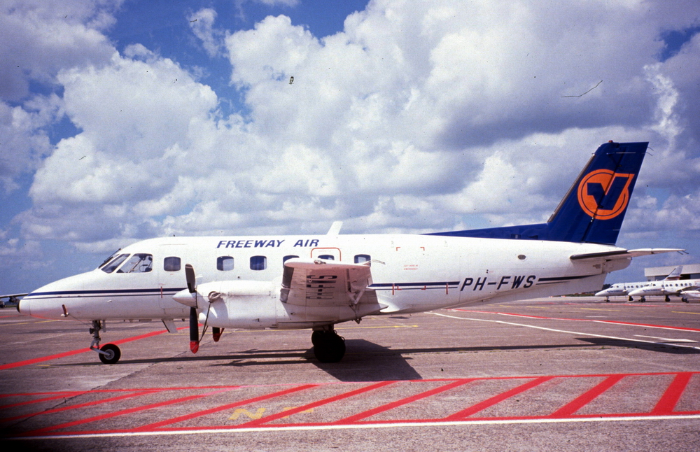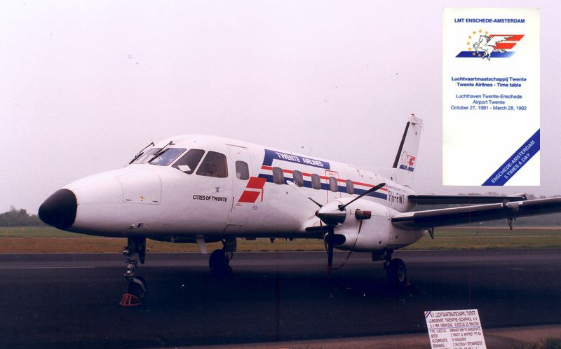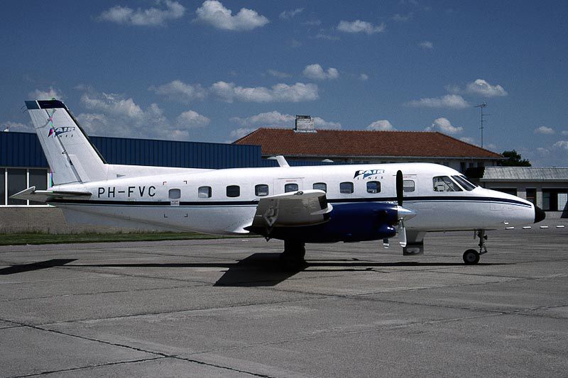 Twente Airlines operated from September 1990 till the end of 1992 with a single hired Embrear EMB-110P the route Twente AB to Amsterdam Schiphol. At first the number of passengers were reasenable but decreased rapidly. 6 Daily flights went to 2. At the end of 1992 the route was continued by F'airlines which added the new route Eelde Groningen-Amsterdam Schiphol. The payloads, esspecially from Eelde Groningen, were good. One had plans for a new route Eelde-London. KLM was not amused and F'airlines was more or less forced to sell its operations in October 1998 to KLM Excel, which stopped the services only a few months later. The FVC was one of the three leased Bandeirates of F'airlines. The PH-FWT was owned by Freeways Air BV, Schiphol, which sold it in 1995. This company provided last-minute package flights until 1995. When their main clients stopped or sold their activities, Freeway Air also had to end its activities and the PH-FWT was sold.