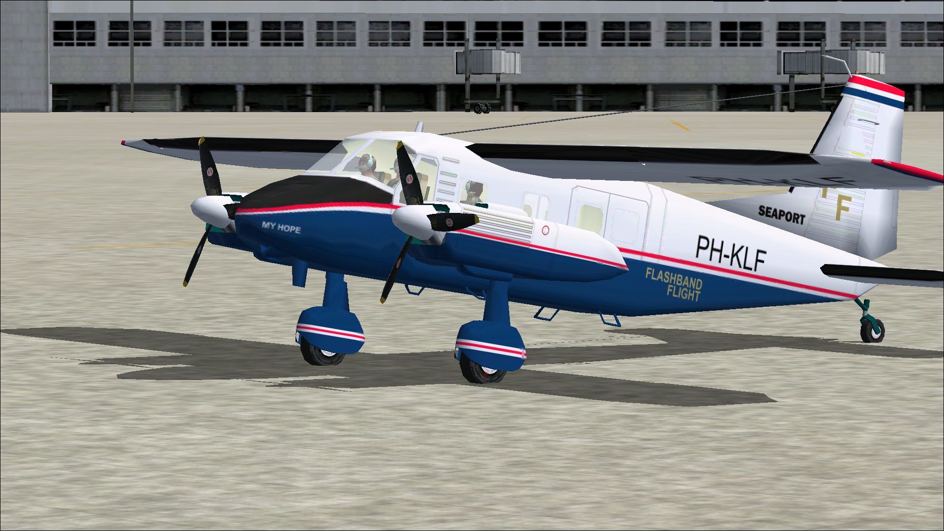 Flashband Flight was part of Nationaal Vliegtuig Beheer, The Hague.Its activities were pleasure flights and adhoc charters from Rotterdam Airport. During that period they flew with a Cessna P206 Super Skylane, three Dornier Do28D's and a Britten Norman BN-2A. The Islander PH-NVA was purchased for the Amsterdam-Middenzeeland-Lille service, which quickly turned out to be a flop in terms of control. In addition, an attempt has been made to run a weekly service between Rotterdam and the Dutch islands Ameland and Texel during a summer season. At the weekends it flew pleasure flights over Rotterdam. The PH-KFF was from 1969 till the end of 1974 part of its fleet. Flashband and Seaport did not succeed to built a profitable position on the market and stopped its activities. Unfortunately this repaint is not 100% correct because the model of Massimo Grassi and Fravin Guidee has a few limitations. Unfortunately I could not find another freeware model..