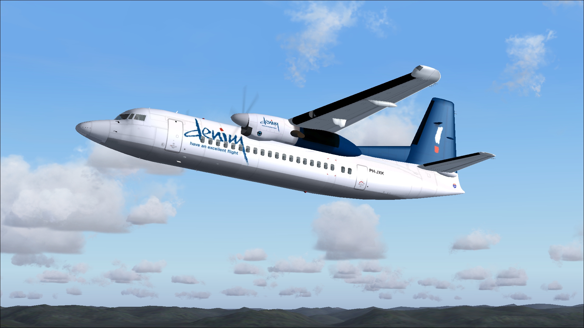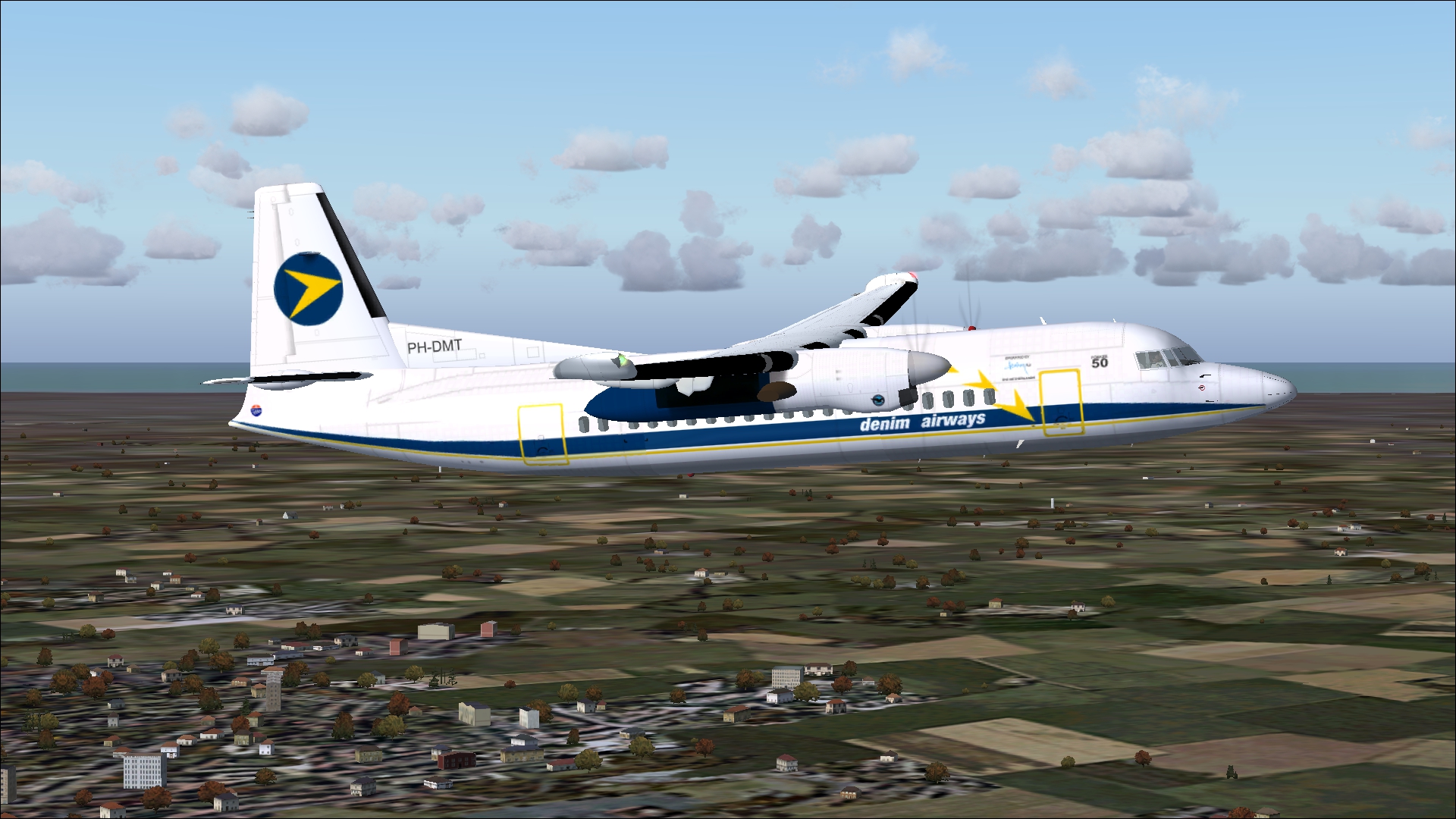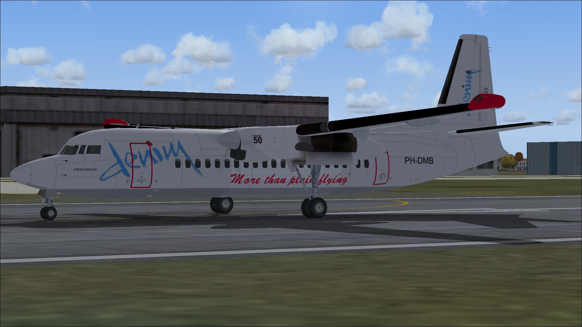PH-SAD was in Schreiner-service from April 1965 till January 1968.Mainly on charterflights to the Mediterranean. After Schreiner Airways ceased its operations the aircraft was purchased by KLM for its subsidiary NLM. In NLM-service till November 1990. Sold back to Fokker. Fokker leased the aircraft to several airlines till November 1993. Scraped in Argentina in 1996, after it has been in service for 31 years. This repaint is an item within the download: Fokker F 27-100,200,400 Dutch Pack for FS2004 and FSX