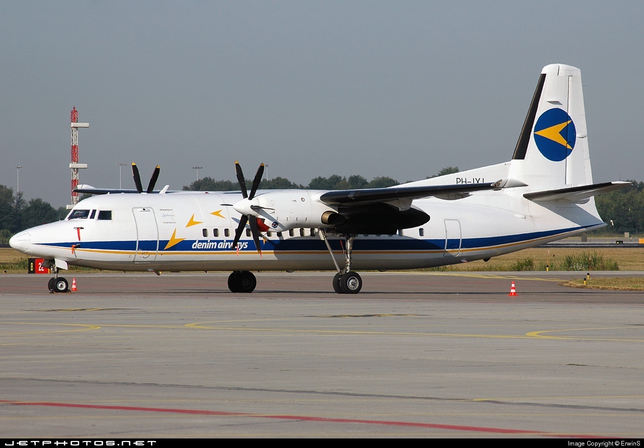 Denim Air then focused on wet leasing. The Spanish Air Nostrum was the main customer which leased at one point 14 Fokker 50's. In 2005 Denim was sold to Panta Holdings, owner of VLM Airlines. Wet-leasing was continued and when Panta sold VLM to KLM-Air France, Denim started its own scheduled services again. However Denim Air went bankrupt in 2010. They still had a lucrative contract with the Norwegian Air Force and to maintain this contract, it was decided to make a restart with 2 Fokker 50s. Until 2014 business went well and the fleet was expanded again. At the end of 2014, a management buy-out of Panta took place and the "new" Panta was no longer interested in Denim. At the end of 2016 Denim lost its permit and went bankrupt in January 2017. In the years of its existence, Denim Air had 27 Fokker 50s, 4 Fokker 100s, 3 Embrear ERJ 190,