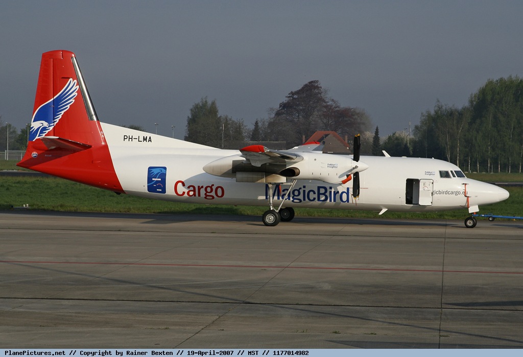 Magic Bird Cargo was a restart ot the bankrupt Magic Blue Airlines. The lastmentioned, based at Rotterdam Airport, started operations in 2005. The company was owned by Luxembourg-based FN Holding which also owned Farnair Europe. Due to mounting problems and insufficient financials, they had to give up after just under a year. The company had leased 2 BAe ATPs from British Aerospace to carry out a freight service for the Swedish Post Office. The aircraft were delivered too late and Magic Blue therefore had to pay compensation to the Swedish Postal Service. The company did not have that financial reserves and went bankrupt. A restart was made with a staff of twelve employees rebranding the airline: Magic Bird Cargo. In addition to the two ATPs, two Fokker 50s ex New Air Services Denmark were also added to the fleet. Again things went wrong and the company went bankrupt in May 2007.