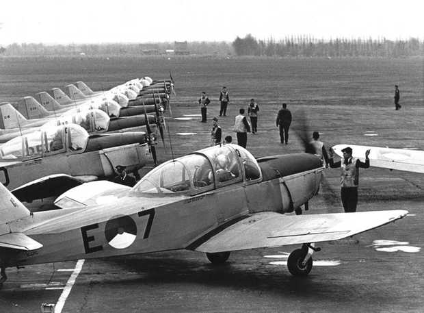 The Rijksluchtvaartschool(Dutch Government Flight Training School)was founded on Januari 1st 1946 on Gilze Rijen Airforce Base for training pilots for civil aviation. In the same year began the training of airforce pilots on Gilze Rijen as well but the base became too busy. Therefore the RLS was diverted to Eelde Airport(Groningen). The RLS started with ex RAF Tiger Moths, Harvards and Beechcrafts D-18S. In 1950 3 Fokker S.11’s joined the fleet. Soon the Tiger Moths and Harvard were replaced by SAAB Safirs.In respect with the introduction of jet airliners in the 60's the Dutch Government ordered in 1962 7 Morane Saulniers MS760B for jettraining. The PH-UET flew with RLS from 1950 till 1960. It was sold and resold to owners in Holland and Belgium and in 1973 removed from the register. A few years thereafter it served as a eyecatcher in a shop an today it is awaiting restoration at Midden Zeeland Airport.