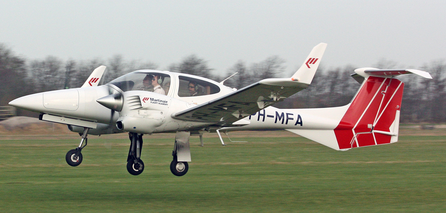 The Diamond DA42 Twin Star is a 4-seater produced in Austria. Its airframe is made largely of composite materials.The aircraft was certified in Europe and 2005 in the USA in 2004. The original Tielert diesel engine was replaced in 2009 by the Austro E4 300 4 cylinder diesel engine, designed and manufactured by a subsidiary of Diamond. The Austro engine delivers 20% more power, while giving better fuel economy than the Tielert engine and results in a higher gross weight and increased performance. This version, the D42NG, has an integrated Garmin G1000 with a Garmin GFC700 autopilot plus the modern instruments such as those used in the today's generation aircraft. The PH-MFA is in the Martinair fleet since October 2011