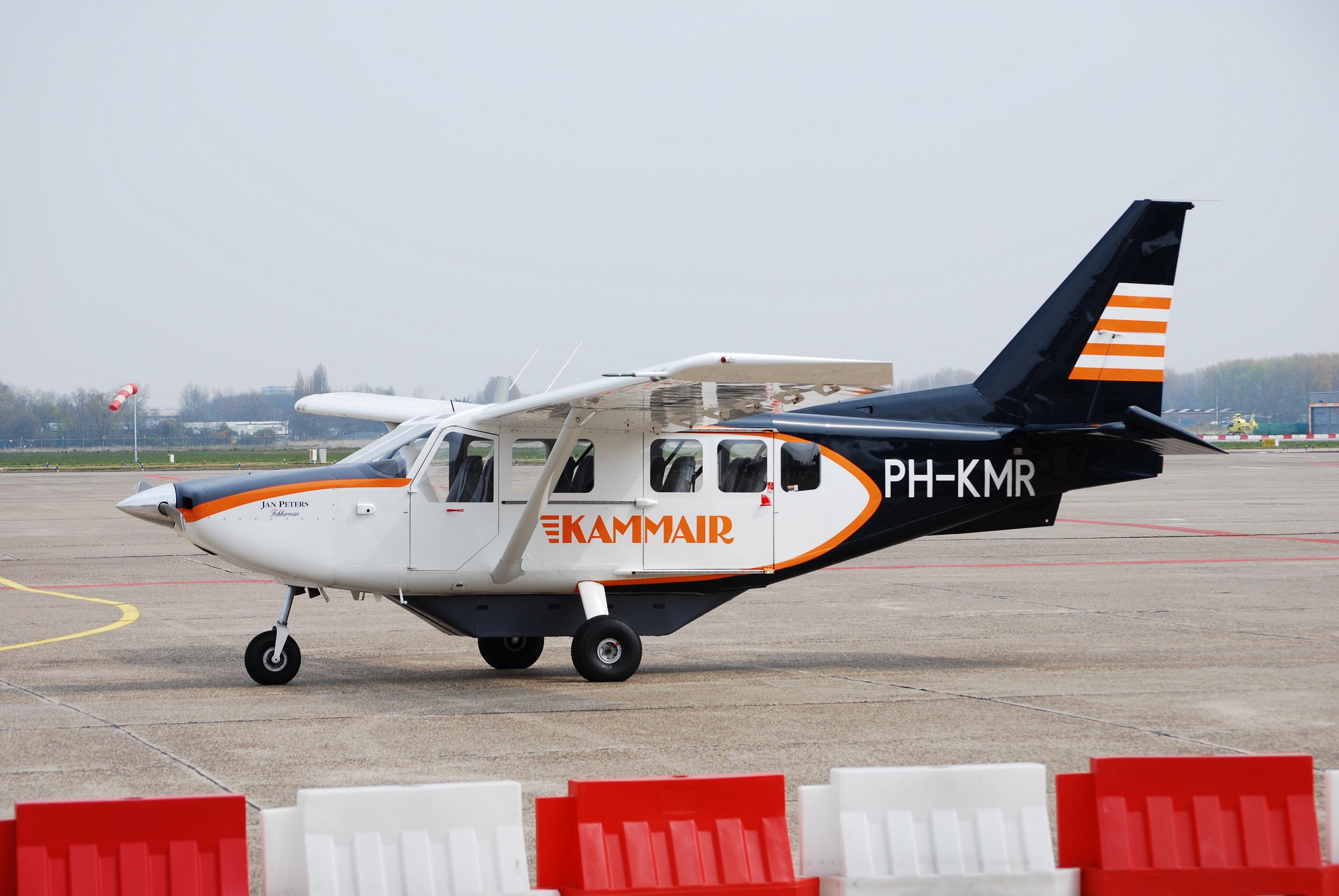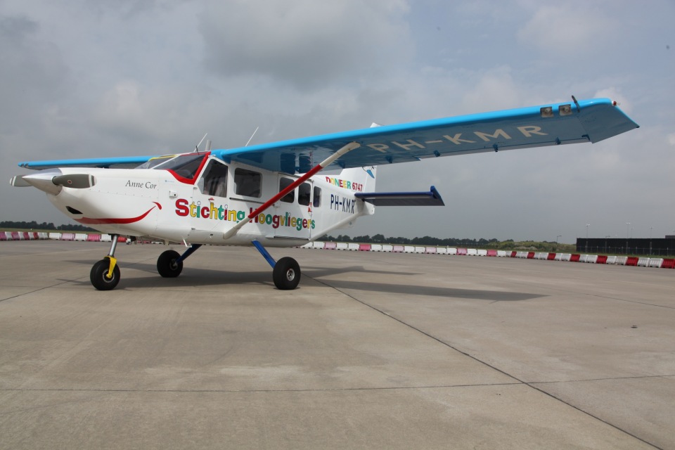 The Australian built Gippsland GA8 Airvan is a multipurpose aircraft for 4 to up to 14 passengers. Besides the GA8 Gippsland has also developed the slightly larger GA10 turboprop version. Till today over 200 are built. Kammair started in October 2006 with a single Gippsland GA8 at Rotterdam Airport. A weird choice to fly with this type as the only operator in the Netherlands. Kammair focused on pleasure flights and taxi services.One of its customers was the foundation Stichting Hoogvliegers, which organizes pleasure flights with sick and disabled children. Kammair has not become really successful. In 2011 it ceased its activities and the PH KMR was sold to the foundation Stichting Hoogvliegers. It was painted in bright colors and fly from Lelystad Airport since.