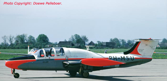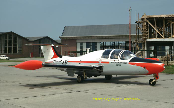 The Rijksluchtvaartschool(Dutch Government Flight Training School)was founded on Januari 1st 1946 on Gilze Rijen Airforce Base for training pilots for civil aviation. In the same year began the training of airforce pilots on Gilze Rijen as well and the base became too busy. Therefore the RLS was diverted to Eelde Airport(Groningen). The RLS started with ex RAF Tiger Moths, Harvards and Beechcrafts D-18S. Soon the Tiger Moths and Harvard were repalced by SAAB Safirs. In respect with the introduction of jet airliners in the 60's the Dutch Government ordered in 1962 seven Morane Saulniers MS760B for jettraining. The PH-MSU was from October 1964 till February 1974 in service with the RLS. Sold to the USA and registered N760Q. In 1999 the plane was used for spare parts.