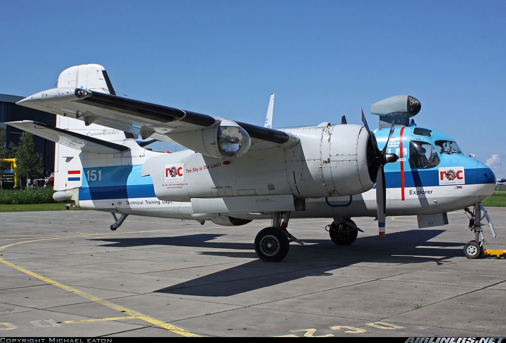 Under the Mutual Defense Assistant Program (MDAP), the MLD(Dutch Naval Service) received in 1960 26 US-built S2F-1 Trackers in 1961 added with 17 more Canadian-built CF2F1's. The 151 served on the aircraft carrier "Karel Doorman" and when the ship was taken out of service, at Valkenburg airbase near The Hague. In 1975 the aircraft was taken out of the fleet and donated to the KLM Engeneering School in Hoofddorp (now ROC Amsterdam) for the training of aircraft mechanics. The aircraft was recently restored and painted in its original MLD livery. Today it is part of the collection of the Aviodrome Museum at Lelystad Airport.