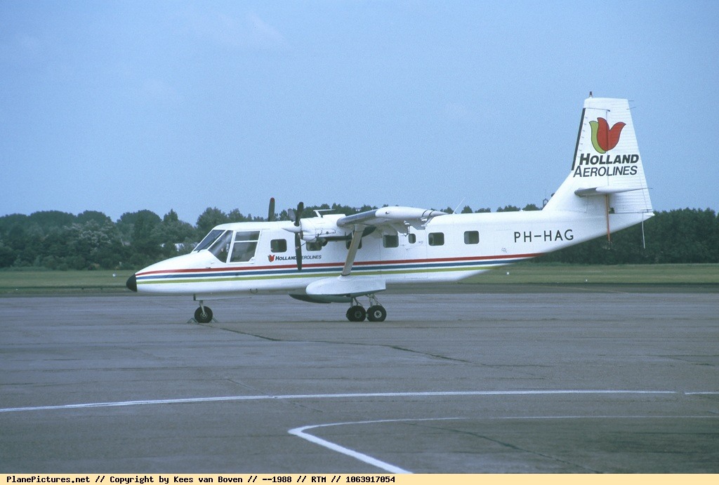The Nomad's were a surprising choice. Holland Aero Lines was the only airline that flew this type in Europe. They were bought for a low price in the USA. The maintenance was difficult and therefore relatively expensive. One of the Nomad's wass used for spare parts. At the end of 1987 the airline came in serious financial problems and it went bankrupt soon. The PH-HAG had been in its fleet from 1984 till 1987 and the PH-HAL during 1986.