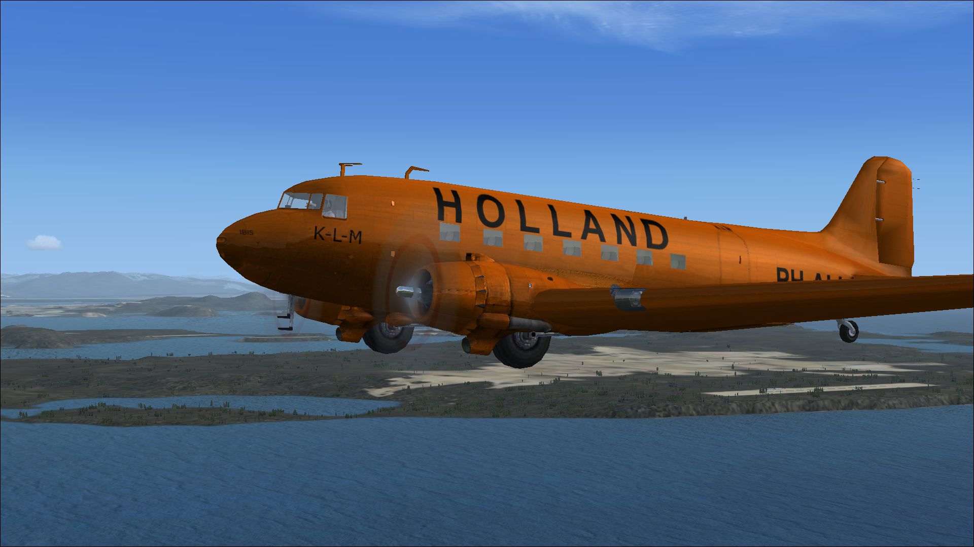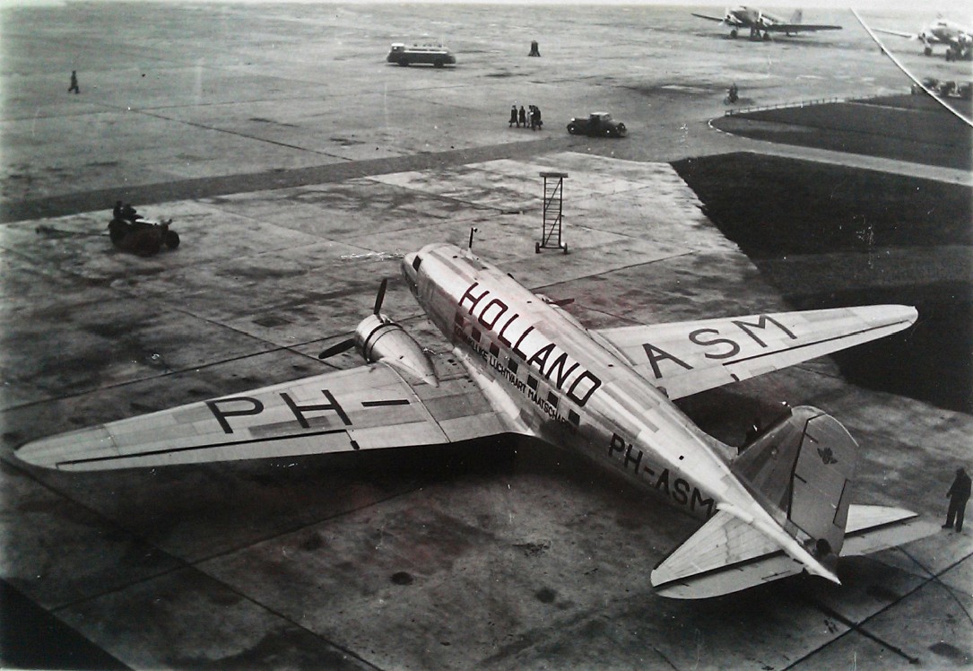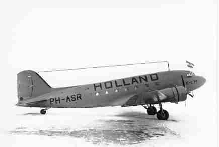 The PH-ALI Ibis was the first DC-3 in KLM-service on 8th Oktober 1936. In 1939 it flew with big caracters "Holland" on the fuselage to emphasize Holland's neutrality. Beginning 1940 it was painted orange for the same reason. It escaped to Britain in May 1940 and became G-AGBB and flew services for BOAC to Portugal and Westafrica. On 1st of June 1943 it has been shot down by the Germans over the Golf of Biskay.