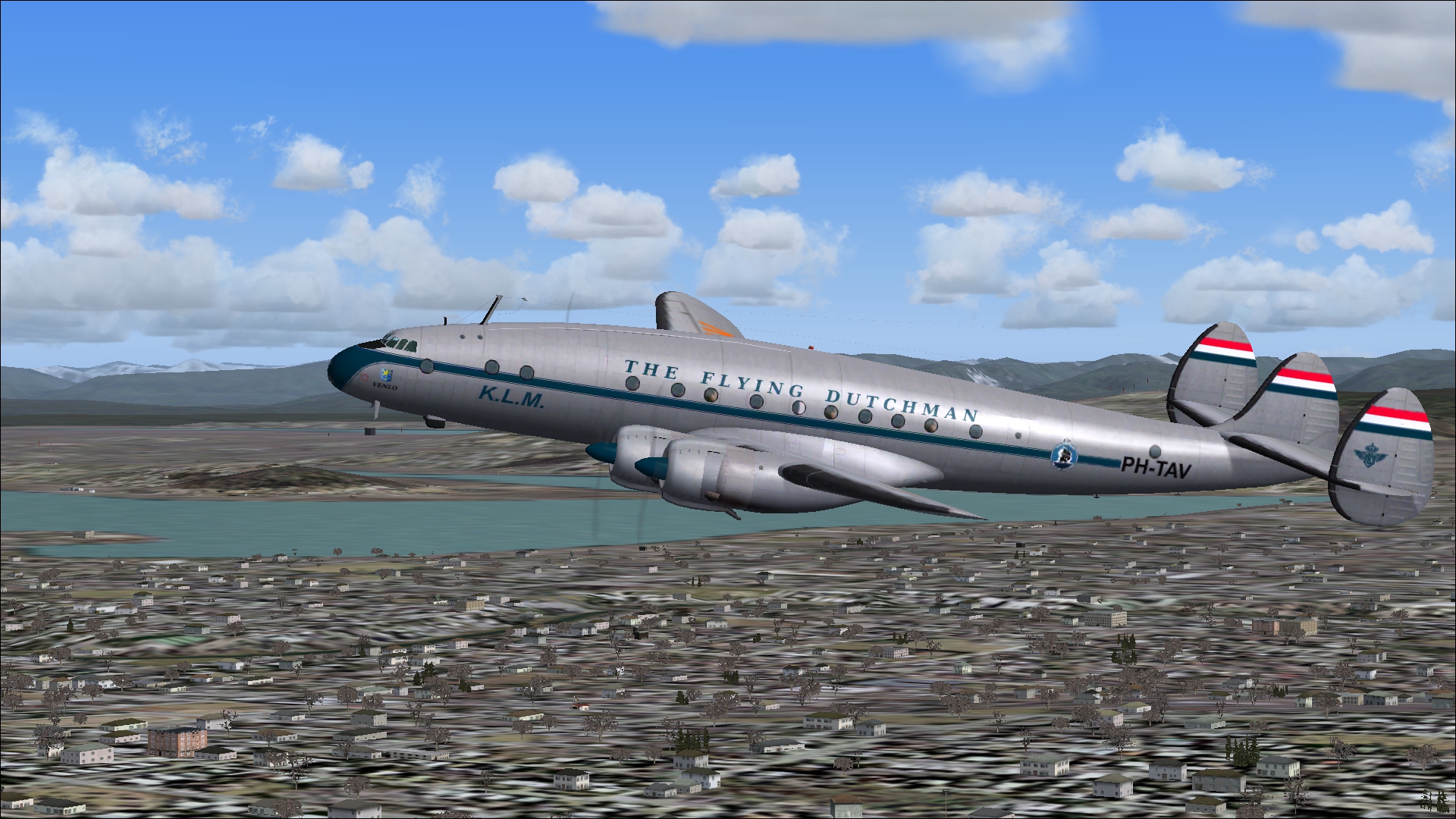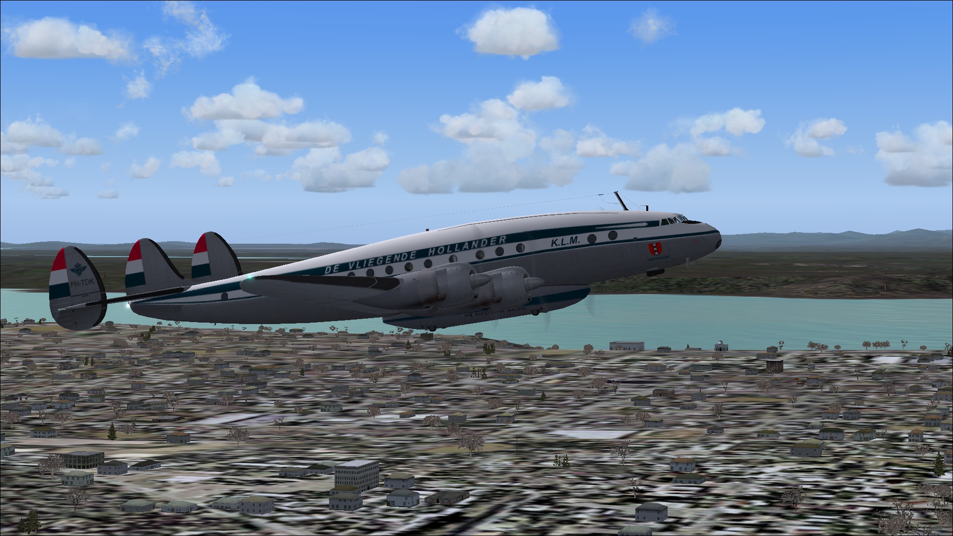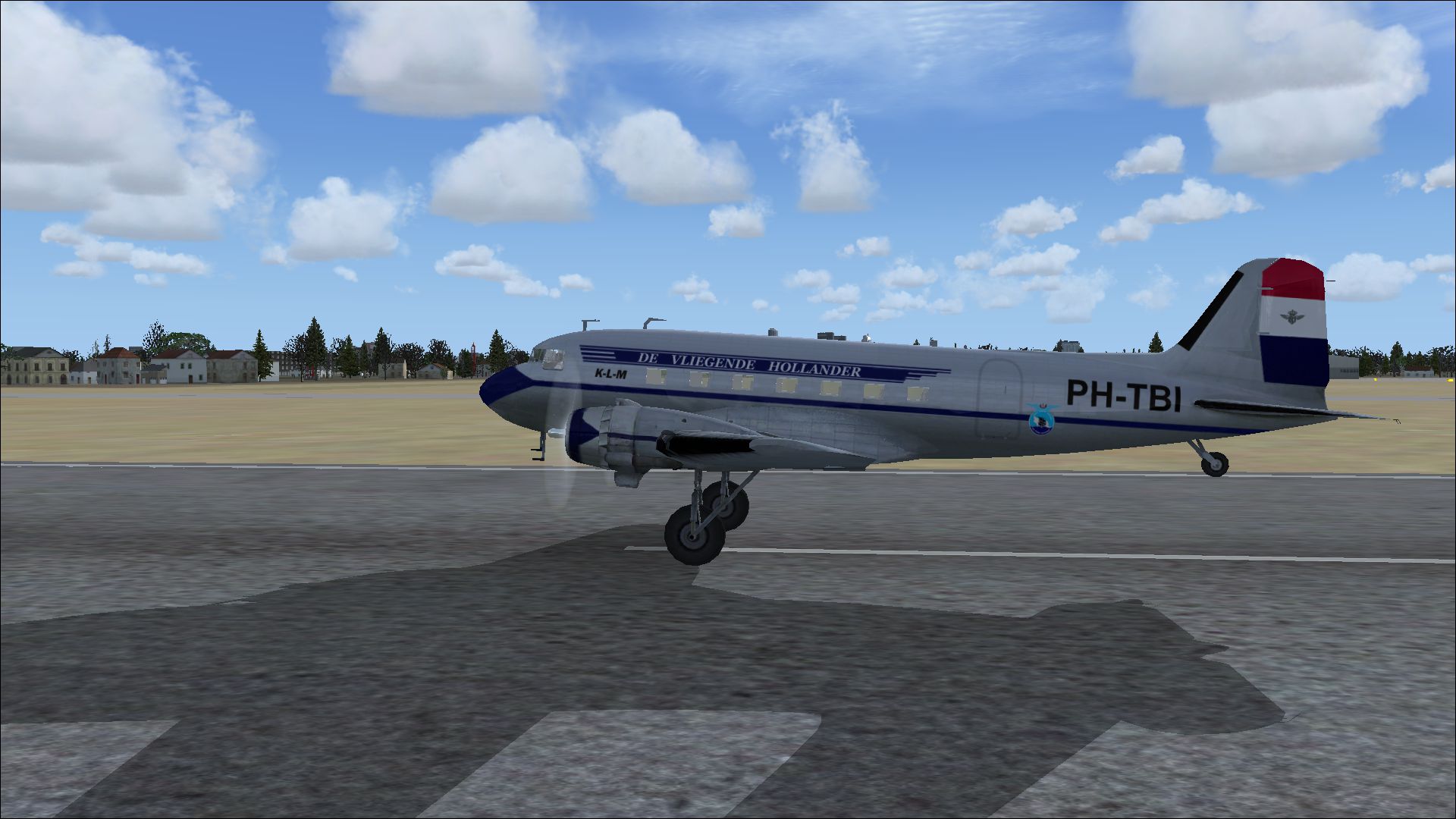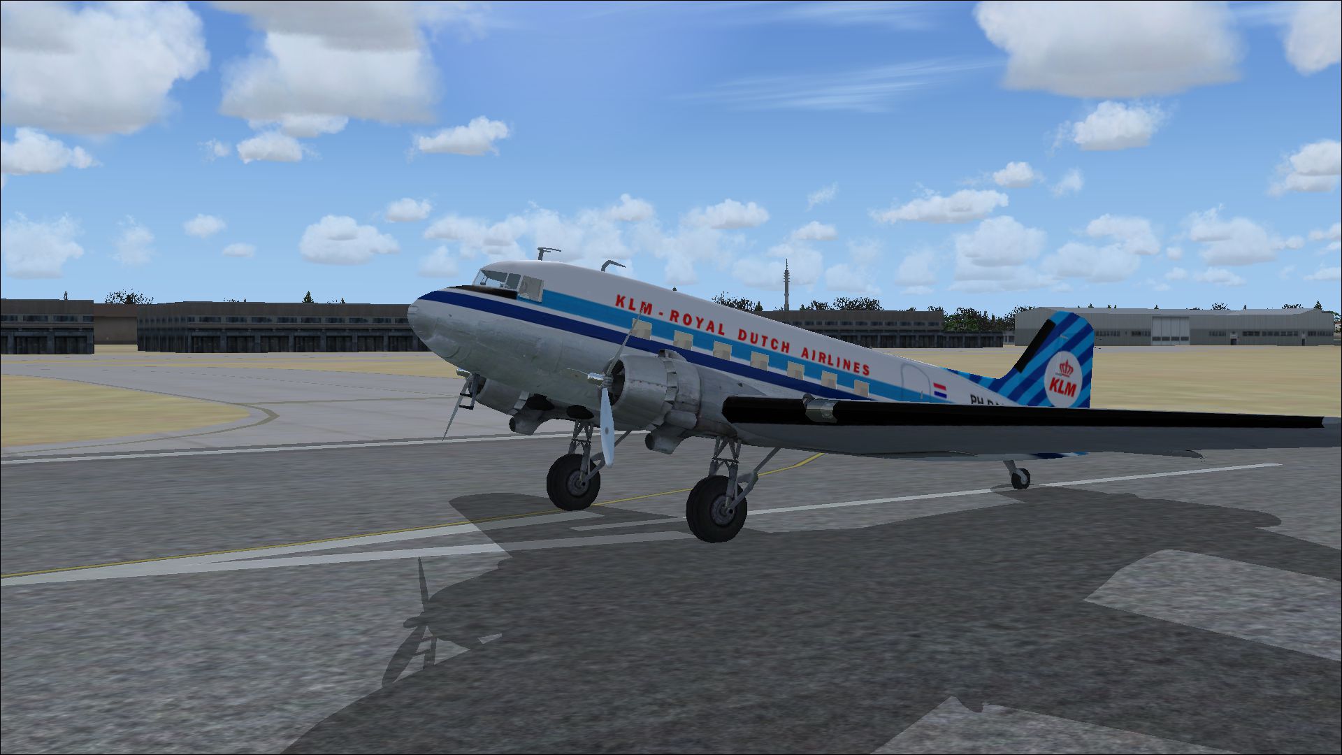 The PH-TAT is one of the six immediately after WII purchased DC 4-1009's, and was delivered in March 1946. With this plane the Amsterdam-New York service was restored. It also had been a number of years in service with the Caribbean subsidiary of KLM as PJ-TAT.In 1954 it got the registration PH DBT. In June 1958 it was sold to Air France. It had two different liveries. In 1954 it had on the left "The Flying Dutchman" and on the right in Dutch "De Vliegende Hollander" on the fuselage. These repaints are part of the download:Douglas DC-4 Dutch Pack for FS2004 and FSX.