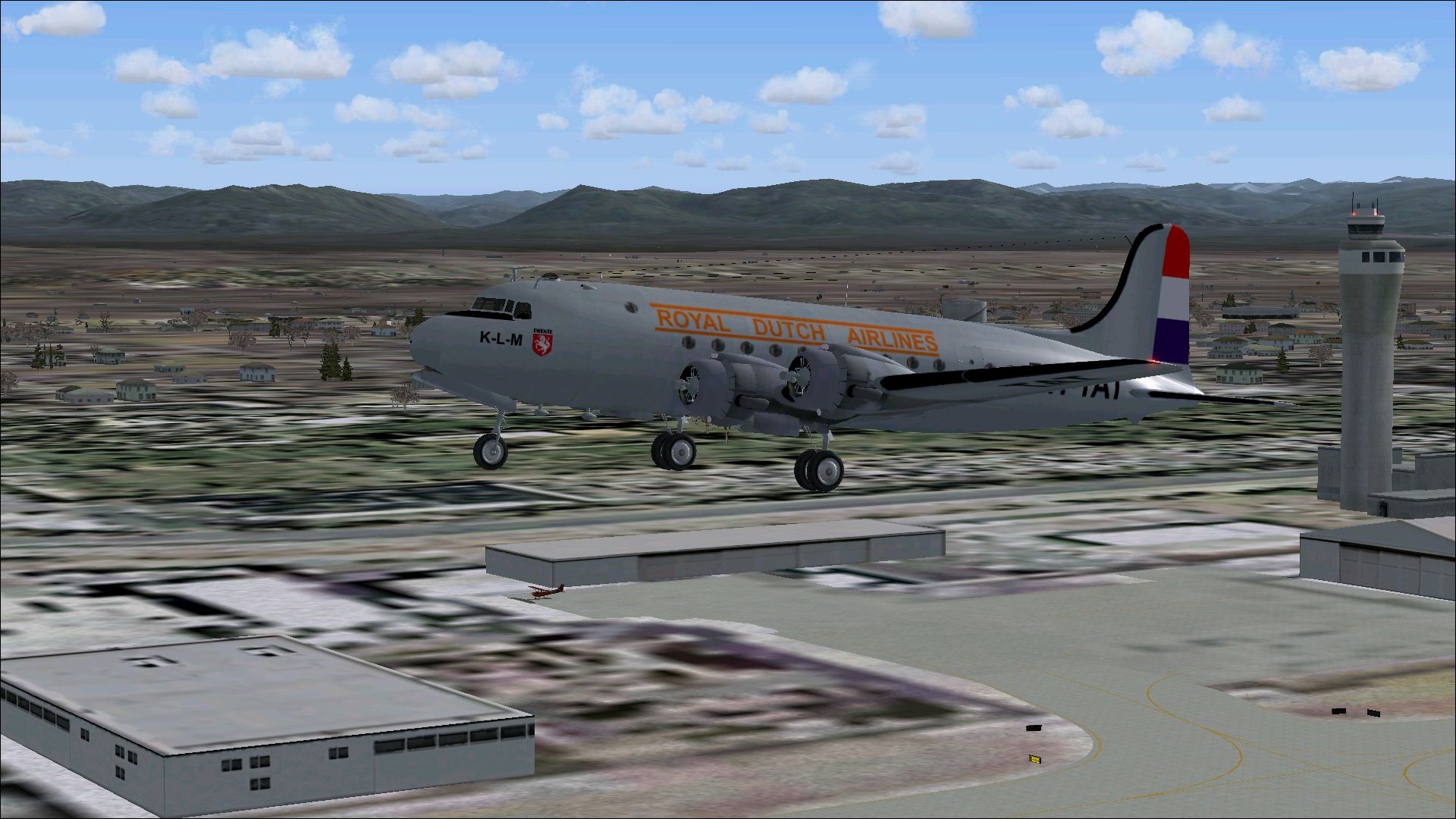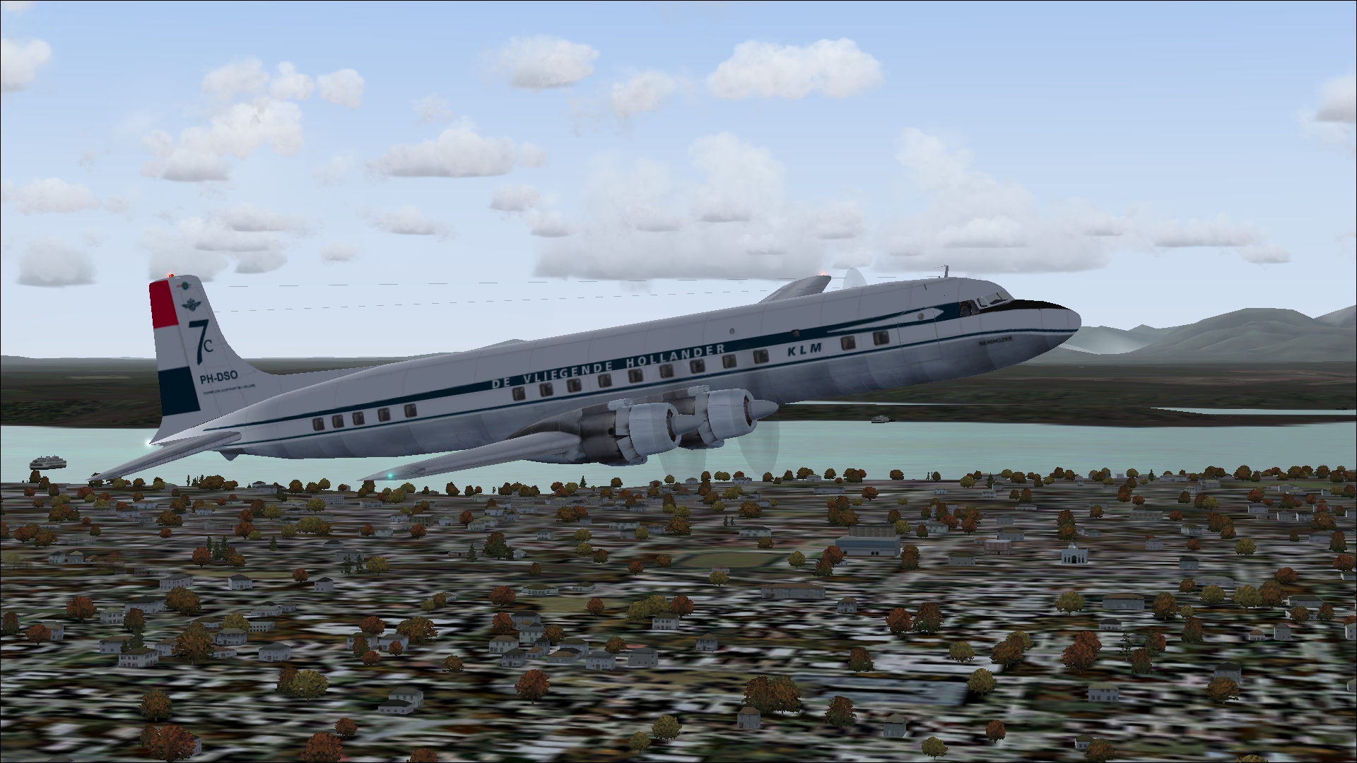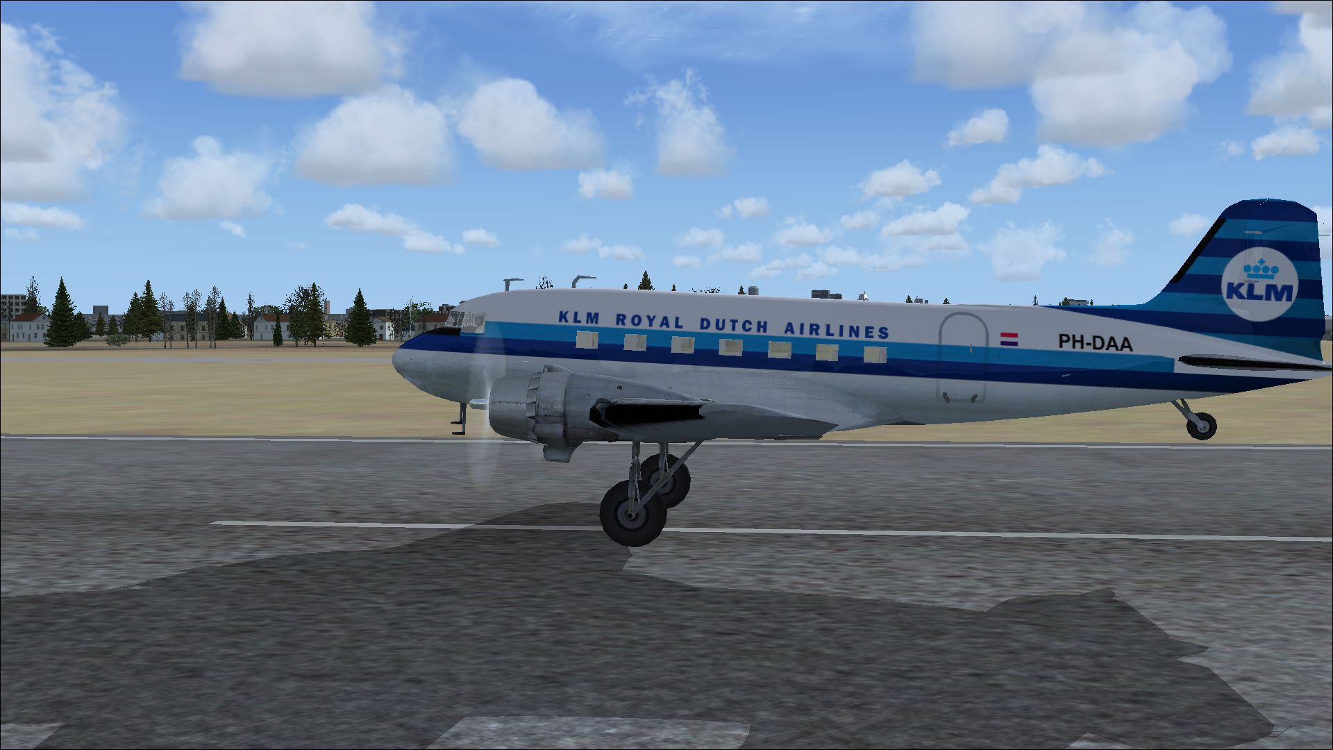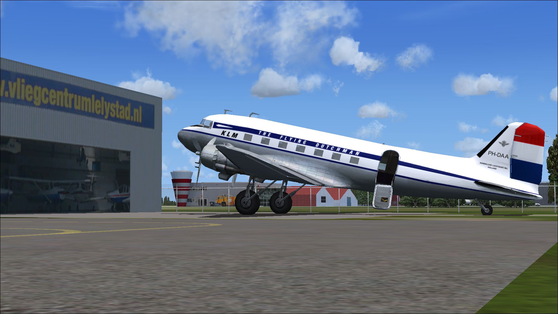 The PH-TAT is one of the six immediately after WII purchased DC 4-1009's, and was delivered in March 1946. With this plane the Amsterdam-New York service was restored. It also had been a number of years in service with the Caribbean subsidiary of KLM as PJ-TAT.In 1954 it got the registration PH DBT. In June 1958 it was sold to Air France. It had two different liveries. In 1954 it had on the left "The Flying Dutchman" and on the right in Dutch "De Vliegende Hollander" on the fuselage. These repaints are part of the download:Douglas DC-4 Dutch Pack for FS2004 and FSX.