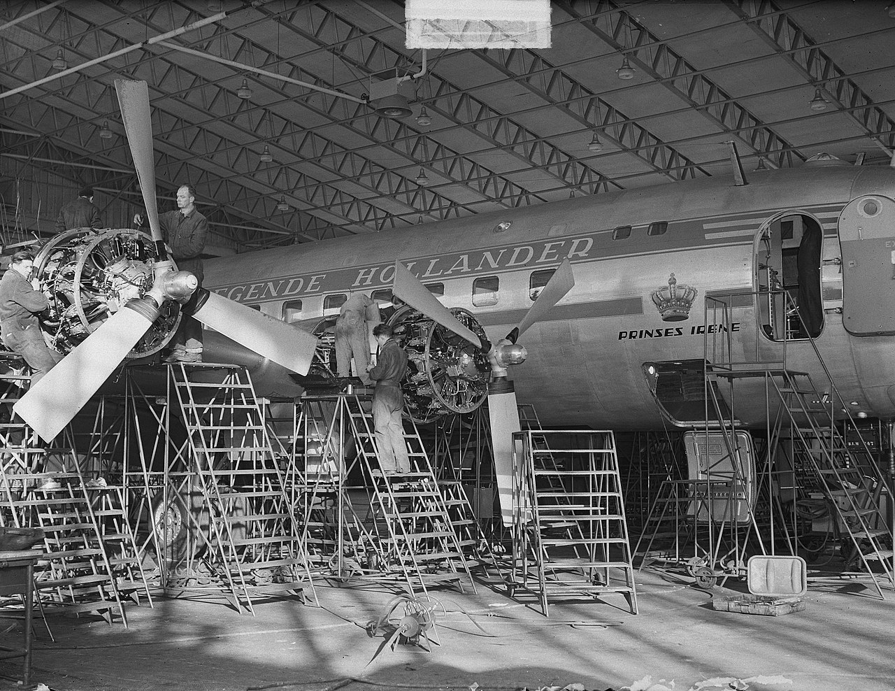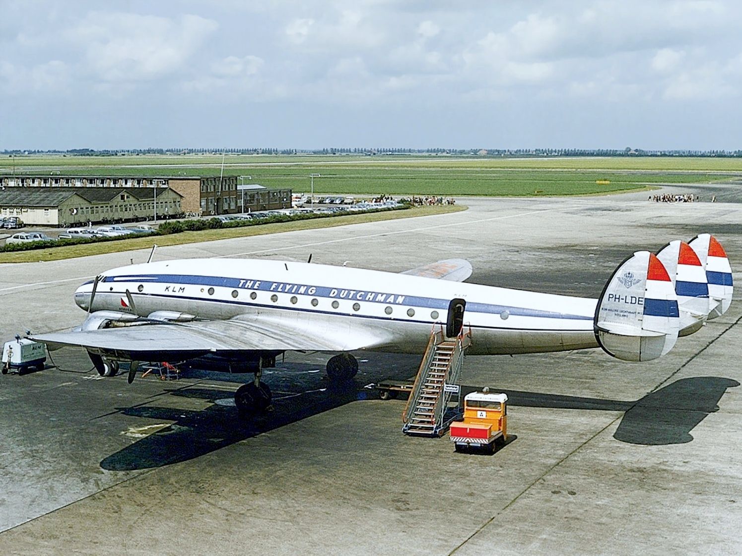 As early as 1939, KLM bought 4 Excaliburs Model L-044 from Lockheed, together with 4 aircraft of the larger and faster Constellation L-049 from the drawing board for new long-distance lines across the Atlantic to New York. The Excalibur resembled an enlarged 4-engine Model 10 Electra with a capacity for 36 passengers and a cruising speed of 431 km/h. Howard Hughes had acquired a majority stake in the airline TWA. He rejected the Excalibur because he wanted a larger, four-engine, pressurized aircraft that could cruise faster than any other large passenger aircraft and fly at much higher altitudes, beating all competitors. The Excalibur project was canceled to focus on the Constellation. The Second World War threw a spanner in the works. Civilian development was halted to give priority to military production. The first Constellation made its first test flight on January 9, 1943. Due to mainly engine problems, only a few dozen of the military version were used during the war. Immediately after the war the first commercial model was put into service by TWA in November 1945. In mid-1946, KLM received the 4 L-049s that had already been ordered before the war, making it the first European airline to fly this type. In 1947, 2 more were added. KLM bought another 20 of the improved L-749 from 1947 to the end of 1950. Lockheed developed a Speedpack for the Constellation, a external container with a length of about 10 meters and a volume of 11 cubic meters that could be placed under the fuselage to carry a maximum load of 3,700 kg. With Speedpack the cruising speed was only 20 km/h lower while the range was about 4% less.KLM bought 7 Speedpacks. The PH-TAV "Venlo" was one of 6 L-049's which KLM had in its fleet from 1946 to 1950. It was sold to Capitol Airlines in the USA.