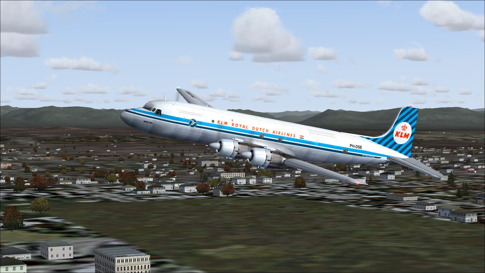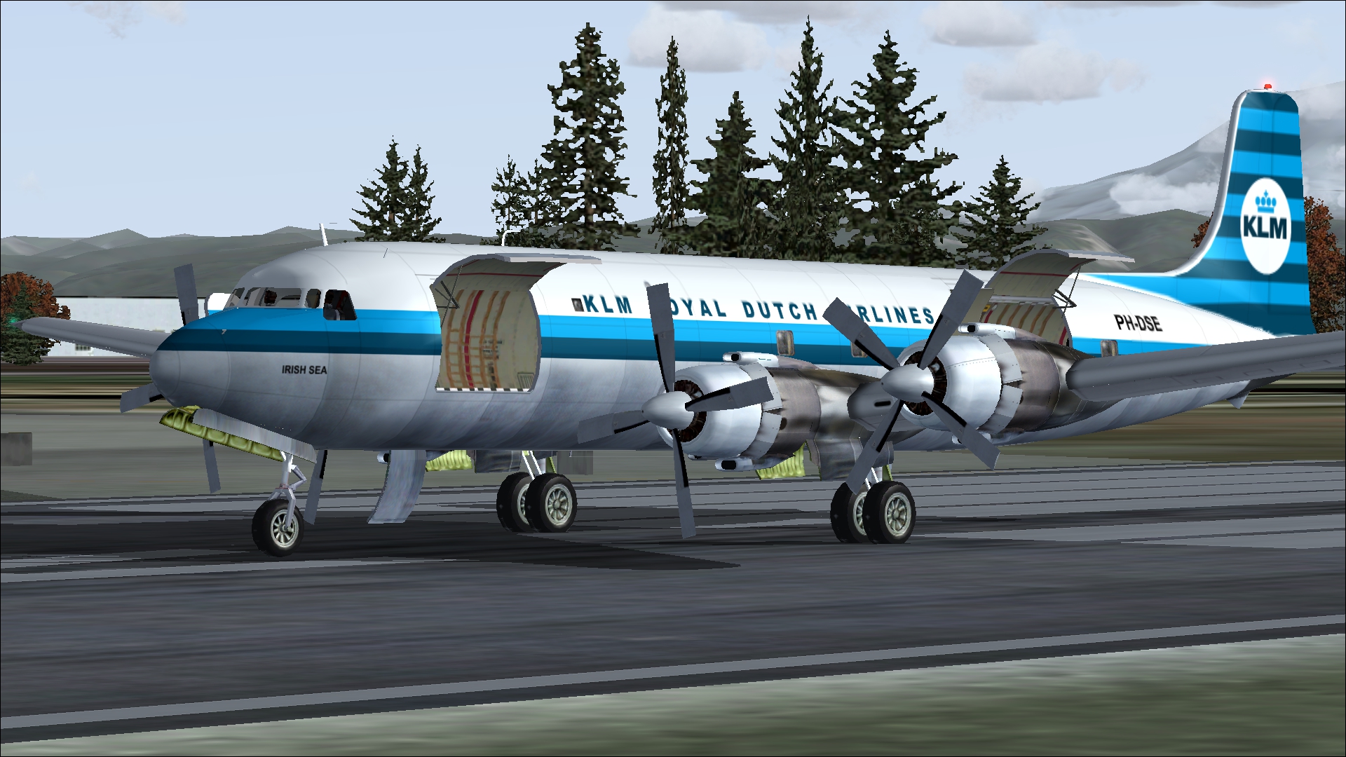 From 1960 onwards, the KLM DC-7C's were mainly used as freighter. Three were converted to DC7F in the early sixties. These were sold to Aer Turas Teorante in Ireland in 1969. The DC-7F can be found under Douglas DC-7F repaint only for FS2004 and FSX.