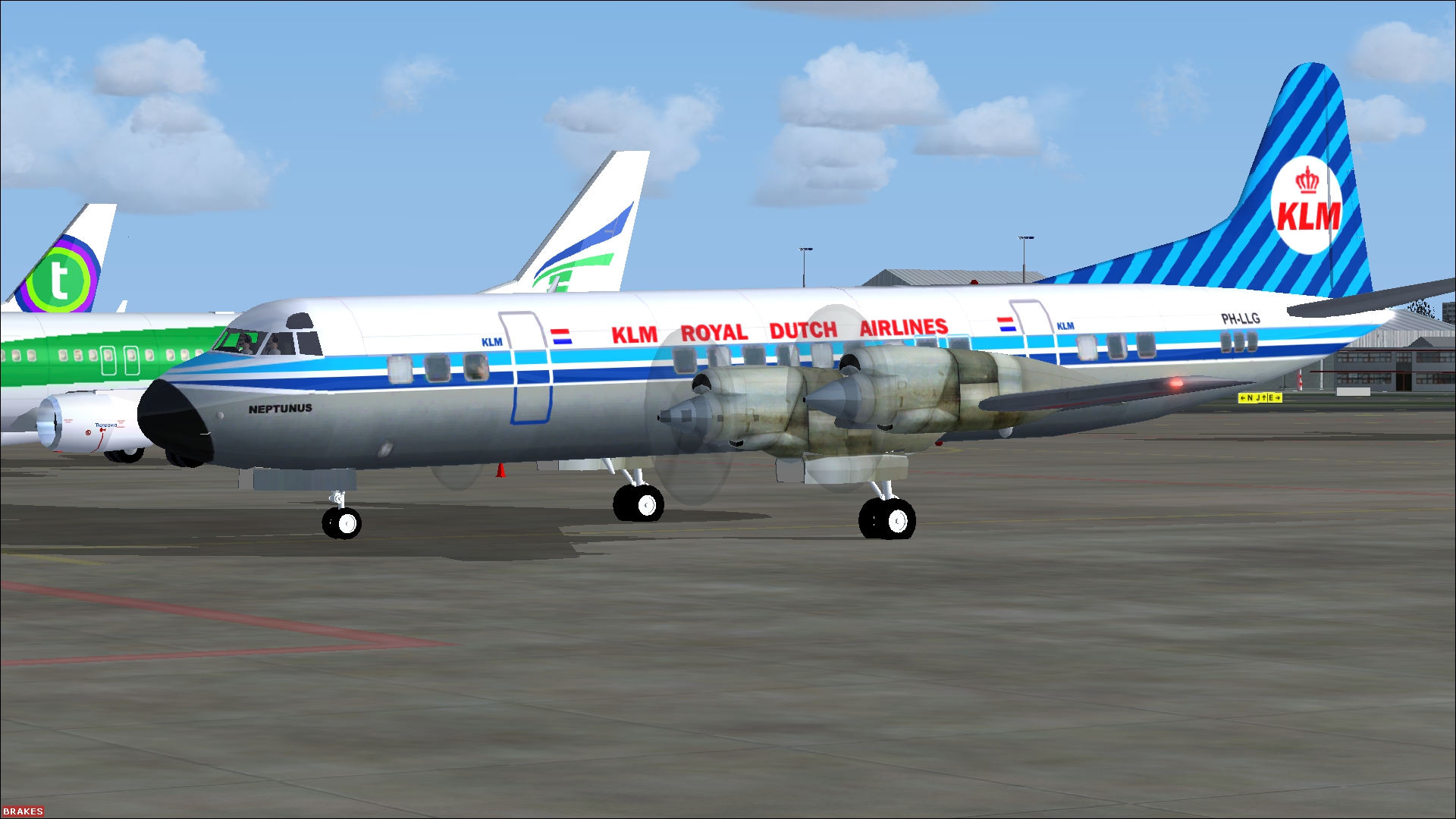 The Douglas DC-7C is the last and most advanced propliner developed from the DC-4 and DC-6. The aircraft was in service for a relatively short time due to the arrival a few years later of the first generation of jetliners such as the Douglas DC-8 and Boeing 707. The large airlines bought them anyway because they had a large flight range and could fly directly to Japan over the North Pole without having to fly over Russia. KLM bought a total of 15 Douglas DC-7Cs which were used from April 1957, when the Douglas DC-8 arrived, on the transatlantic and the route over the North Pole to Japan. Three were converted to DC7F in the early sixties. The remaining were sold to Martin's Air Charter, Südflug, Modern Air Transport and two were sold back to Douglas. I have combined all Dutch Douglas DC-7C paint schemes in one download and you can find them on the download page: Douglas DC-7C Dutch Pack repaint only for FS2004 and FSX.
