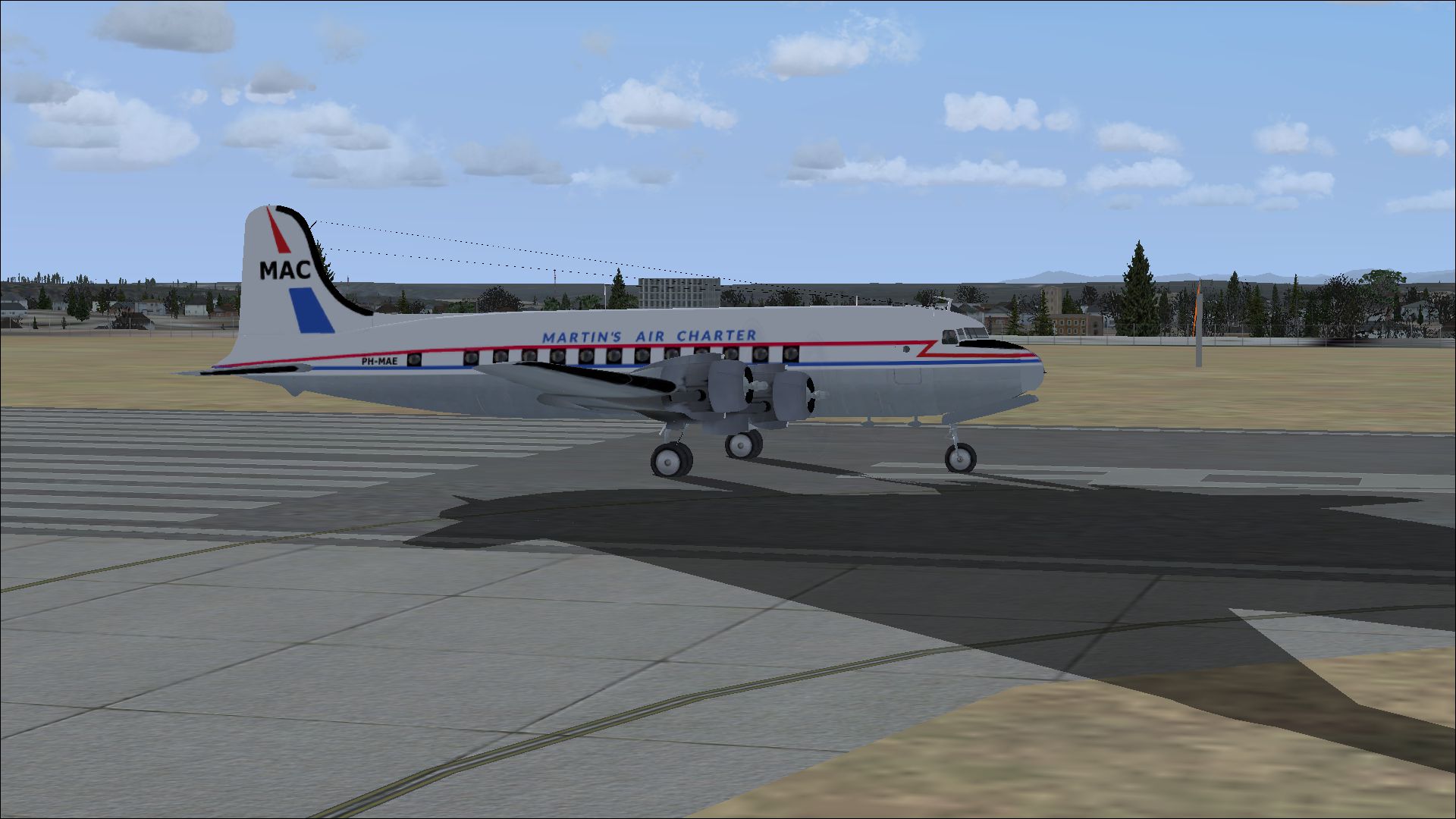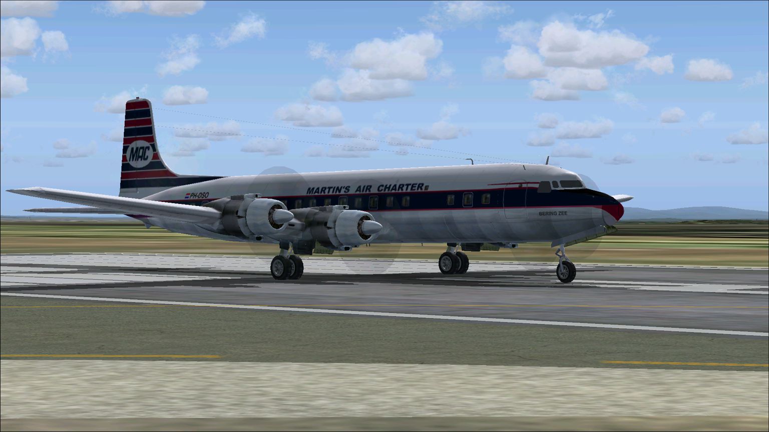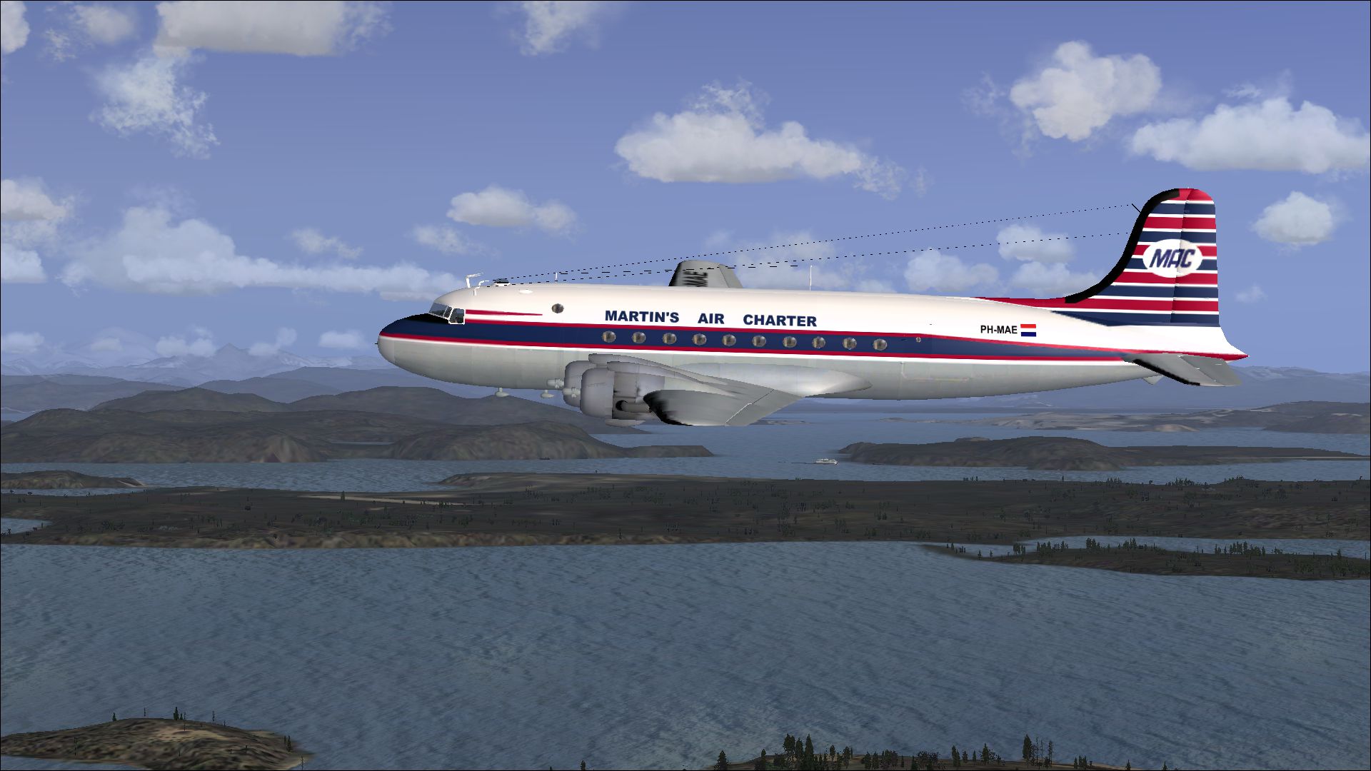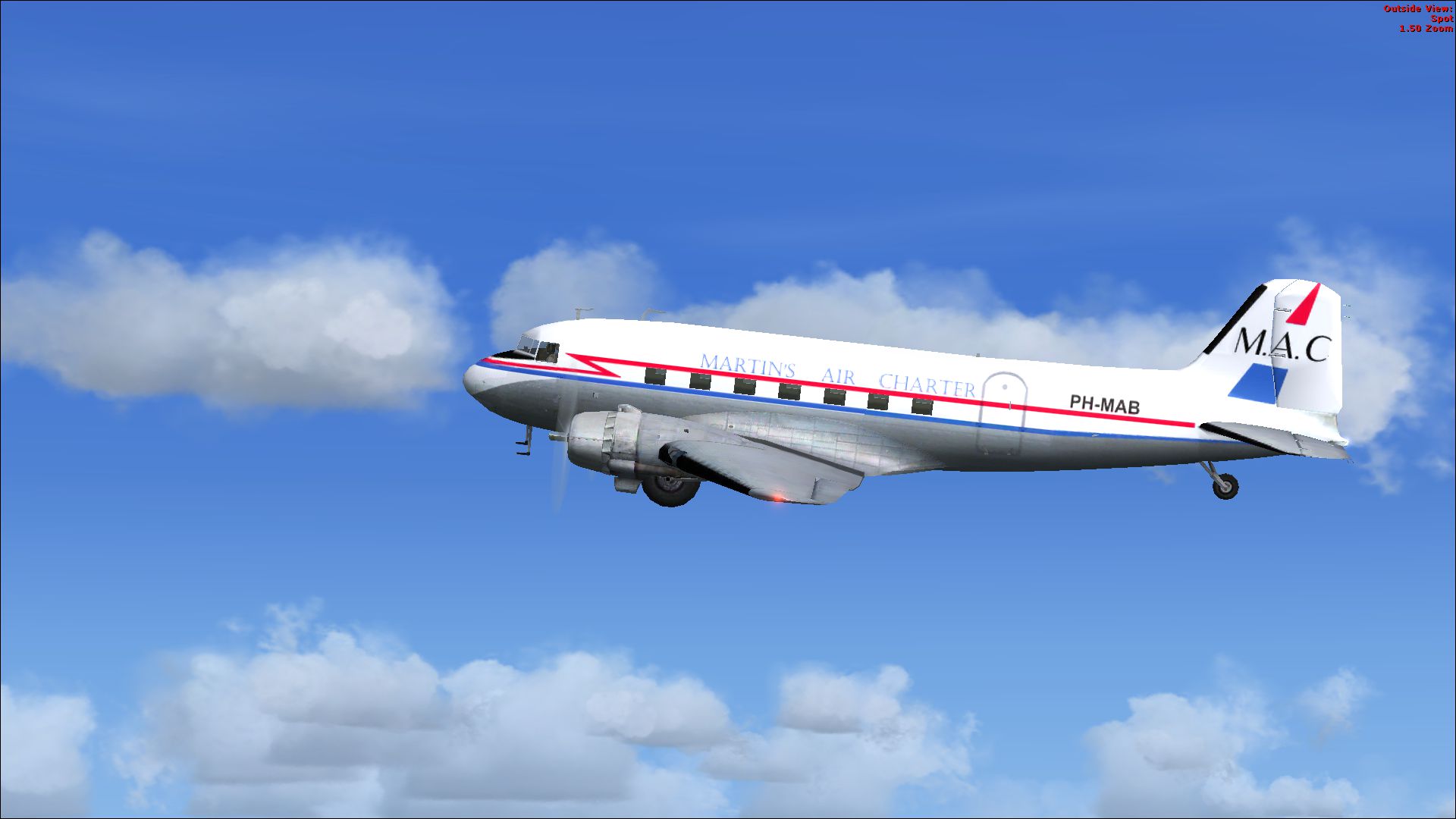 The PH-MAE was leased from June 1962 from Boreas in the U.S.. In March 1963 MAC bought the plane. It was used for both passenger- and freightcharters.In December 1966 it was sold to All Air as D-ADAC. The livery of 1962 is remarkable. The round windows were framed in black as it were square windows so that the aircraft had the appearance of the modern DC-6. In 1964 it got the new MAC livery. These repaints are part of the download:Douglas DC-4 Dutch Pack for FS2004 and FSX.
