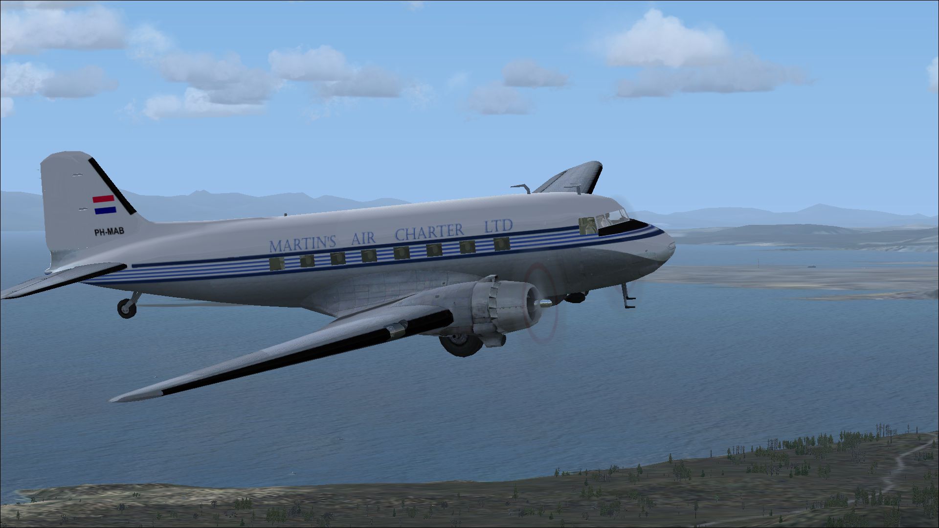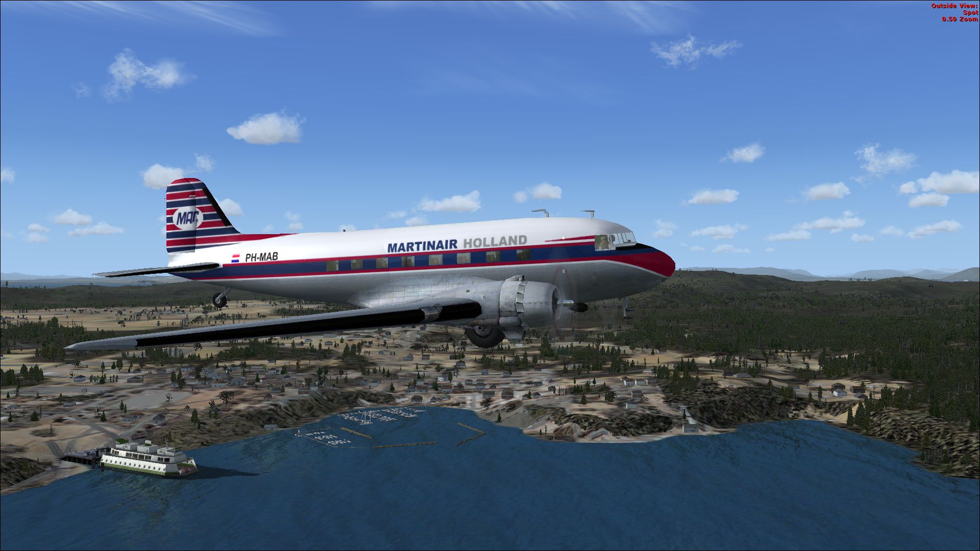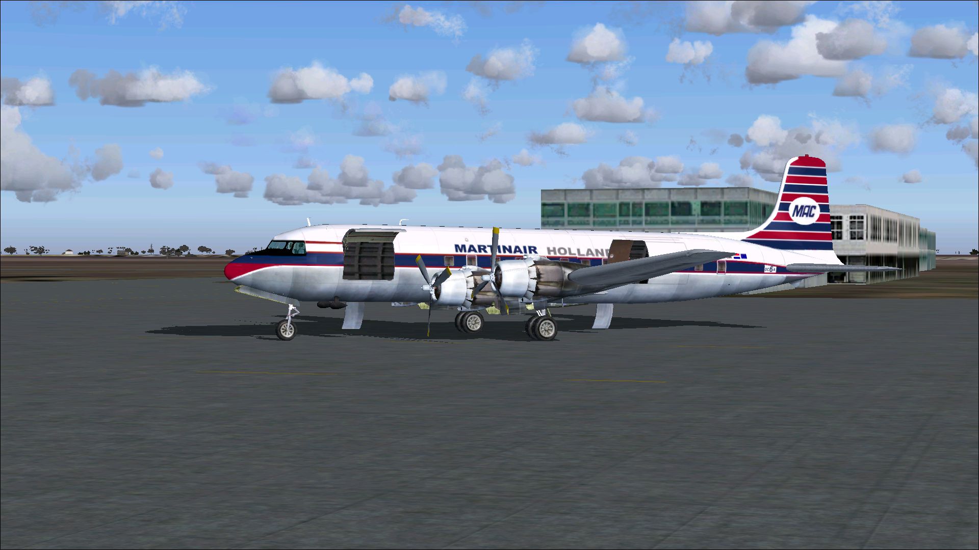 The PH-MAM was in November 1953 delivered as PH-TGB to KLM Royal Dutch Airlines. In Februari 1954 it was reregistered as PH-DFB. In Januari 1961 it was sold to General Electric in the USA. Martinair Holland bought it in December 1966. Till May 1971 the PH-MAM was used on passenger- and freightcharter mainly in Europe. It was sold to Inex Adria Airways. This repaints is part of the download:Douglas DC-6 Dutch Pack for FS2004 and FSX.