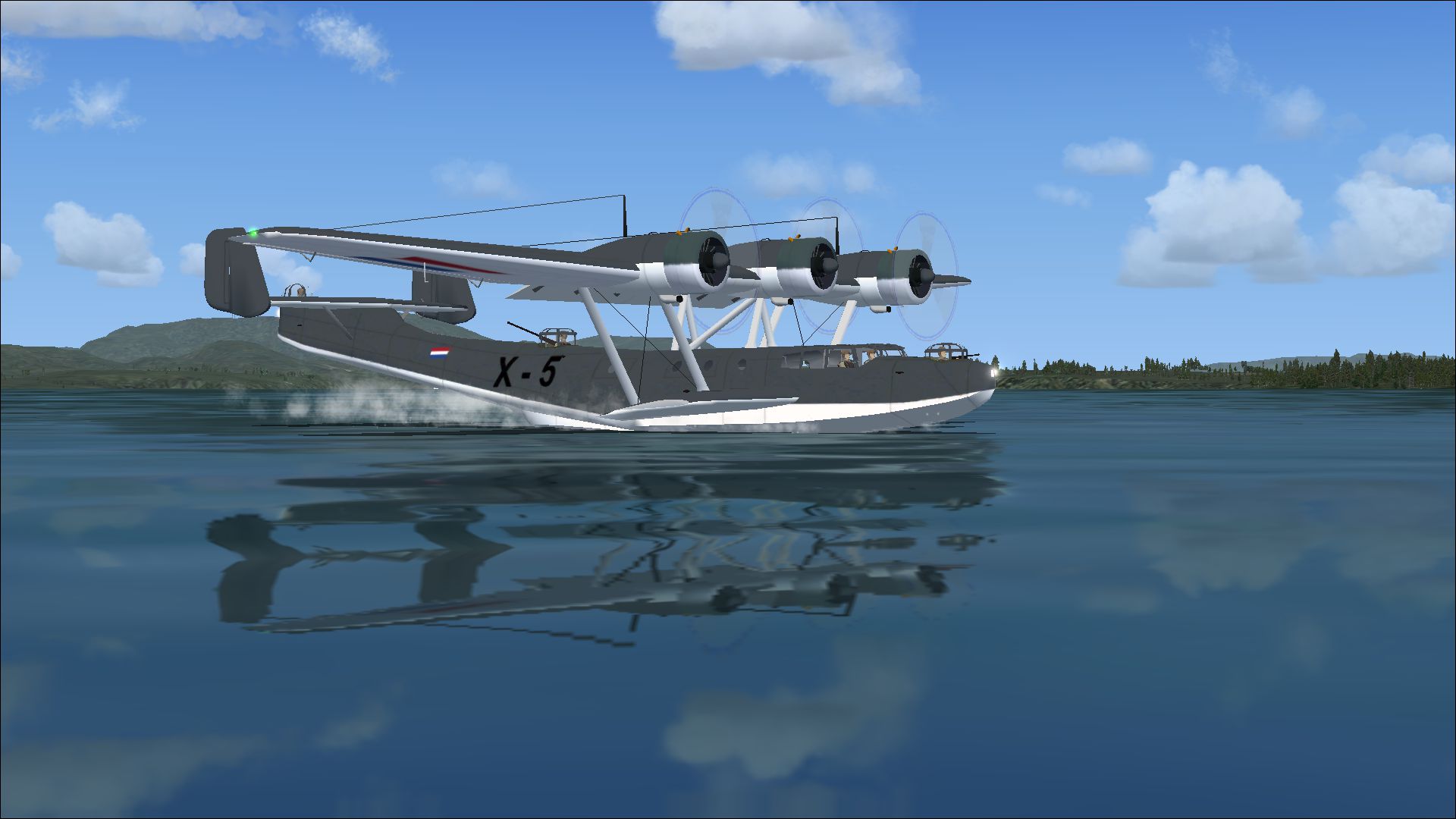 The Dutch Government decided to replace the three Junkers Jumo 205C diesel engines generating 600 hp the Wright Cyclone GR-1820-F52 radial engines. The choice for these engines was made because the Fokker T.IV and the large order for the Glenn Martin 139 bomber were equipped with this engine. The engine was 15% lighter and gave 50% more power than the Junkers diesels. The first flight of any Do-24 took place on July 3rd 1937. One day later the aircraft was handed over to the MLD (Marine Luchtvaart Dienst, Dutch Naval Service) and September 5th the aircraft, now with the registration D-ADLP, was flown to the Weser Flugzeugwerke at Einswarden for the sea trials which were to be held on the North Sea. The seaworthiness of the Do-24 V3 amazed the spectators, there were times when the cockpit of the aircraft was completely submerged. The trials lasted till the end of October and were concluded to full satisfaction. The first Do-24K-1 got the registration X-1 and shipped from Hamburg to Morokrembangan in the Dutch East Indies. Early 1938 the aircraft was ready for it's first mission. The Dutch government decided finally to order a total of 96 Do-24K planes, but due to the Japanese Invasion only 37 were delivered, partly manufactored under licence by Aviolanda. Only 5 Dorniers servived the Japanese invasion and flown to Australia. They entered service in the RAAF but withdrawn in 1944 due to a lack of spareparts. The X-5 entered service on 18-03-1938 and transferred to the RAAF om 29-04-1942 and registered as A49-1. Withdrawn on 20-12-1944.