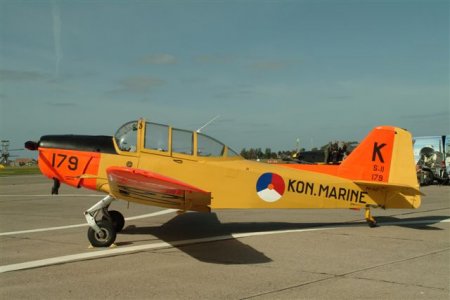 Immediately after WII Fokker S.11 developed the S.11 as a successor to the outdated De Havilland Tiger Moth for basic flight training. Pupil and Instuctor sat next to each other plus a third passenger on the backseat. First flight on December 18, 1947. In the Netherlands, Fokker built 40 S.11's for the Neth.Air Force(LSK), plus 41 for Israel. In Italy, Macchi built 150 S.11's licensed as M416. Fokker Brazil also built 100 for the Brazilian Air Force. The repaint is construction No: 6281 as E 38 supplied to the Neth Air Force in 1950. In 1959 it got a new scheme. In 1970 the plane was transferred as 198 to the Dutch Naval Air Service. Sold in 1975 to Mr. Sloots and registered as PH-SLO. After a recent restoration, the PH-SLO flies from Teuge Airport again in the colors of the Klu.