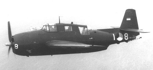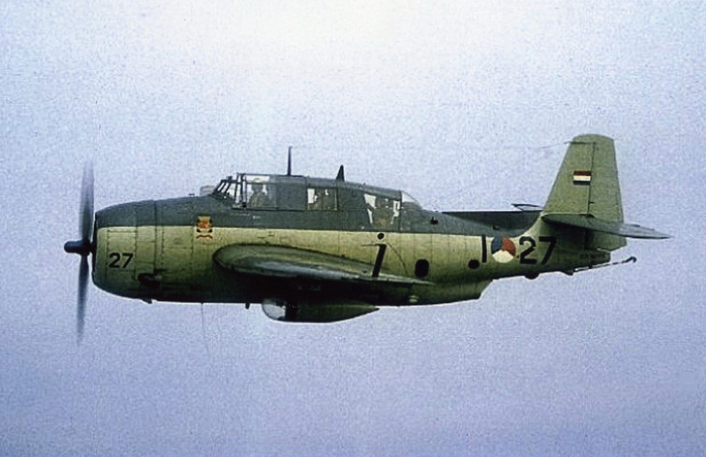 As part of the Mutual Defense Assistant Program (MDAP), the MLD received in 1954 a total of 68 Avengers on loan from the USA, divided into two types, namely 34 TBM-3S2; 24 TBM-3W2. In 1958, another 20 TMB-3E / TMB 3E2 were purchased from the RAF. The S and W-types formed the core of the anti-submarine warefare and a large part was stationed aboard the aircraft carrier Karel Doorman. The TBM-3W2 was equipped with the APS-20 radar.The TBM-3S was equipped with a searchlight for use during night flights. Four depth charges could be taken and two to six sono buoys could be hanged under its wings..