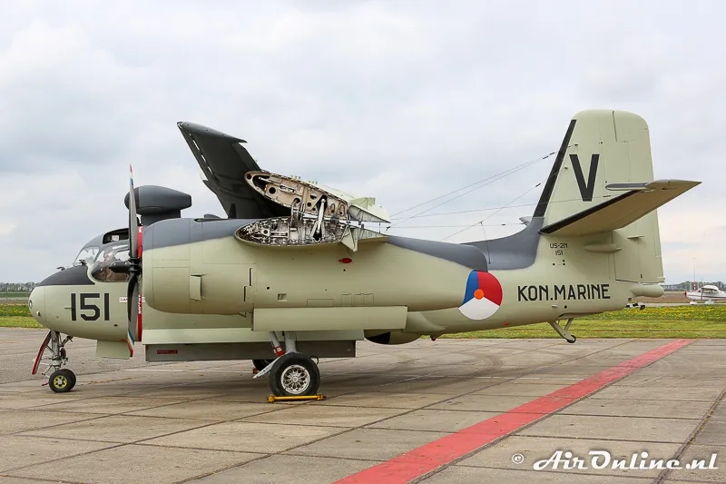 Under the Mutual Defense Assistant Program (MDAP), the MLD(Dutch Naval Service) received in 1960 26 US-built S2F-1 Trackers in 1961 added with 17 more Canadian-built CF2F1's. The 151 served on the aircraft carrier "Karel Doorman" and when the ship was taken out of service, at Valkenburg airbase near The Hague. In 1975 the aircraft was taken out of the fleet and donated to the KLM Engeneering School in Hoofddorp (now ROC Amsterdam) for the training of aircraft mechanics. The aircraft was recently restored and painted in its original MLD livery. Today it is part of the collection of the Aviodrome Museum at Lelystad Airport.