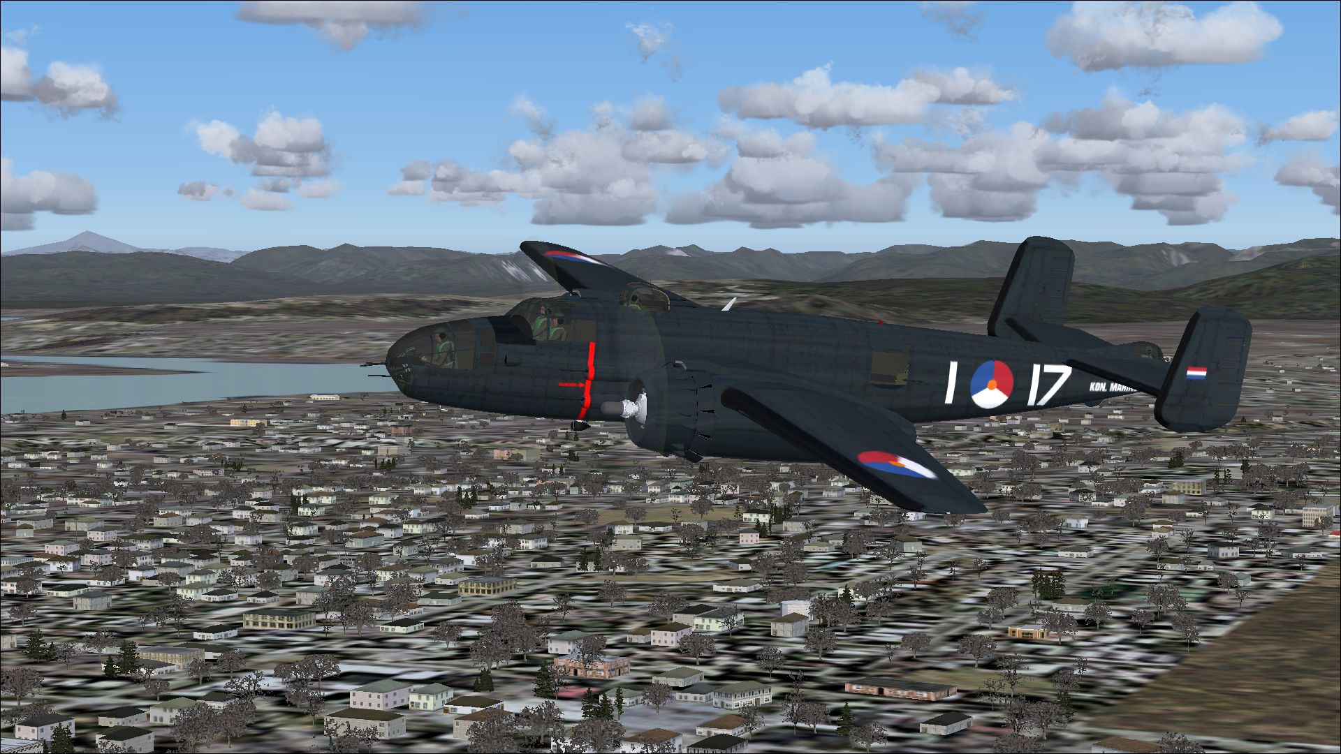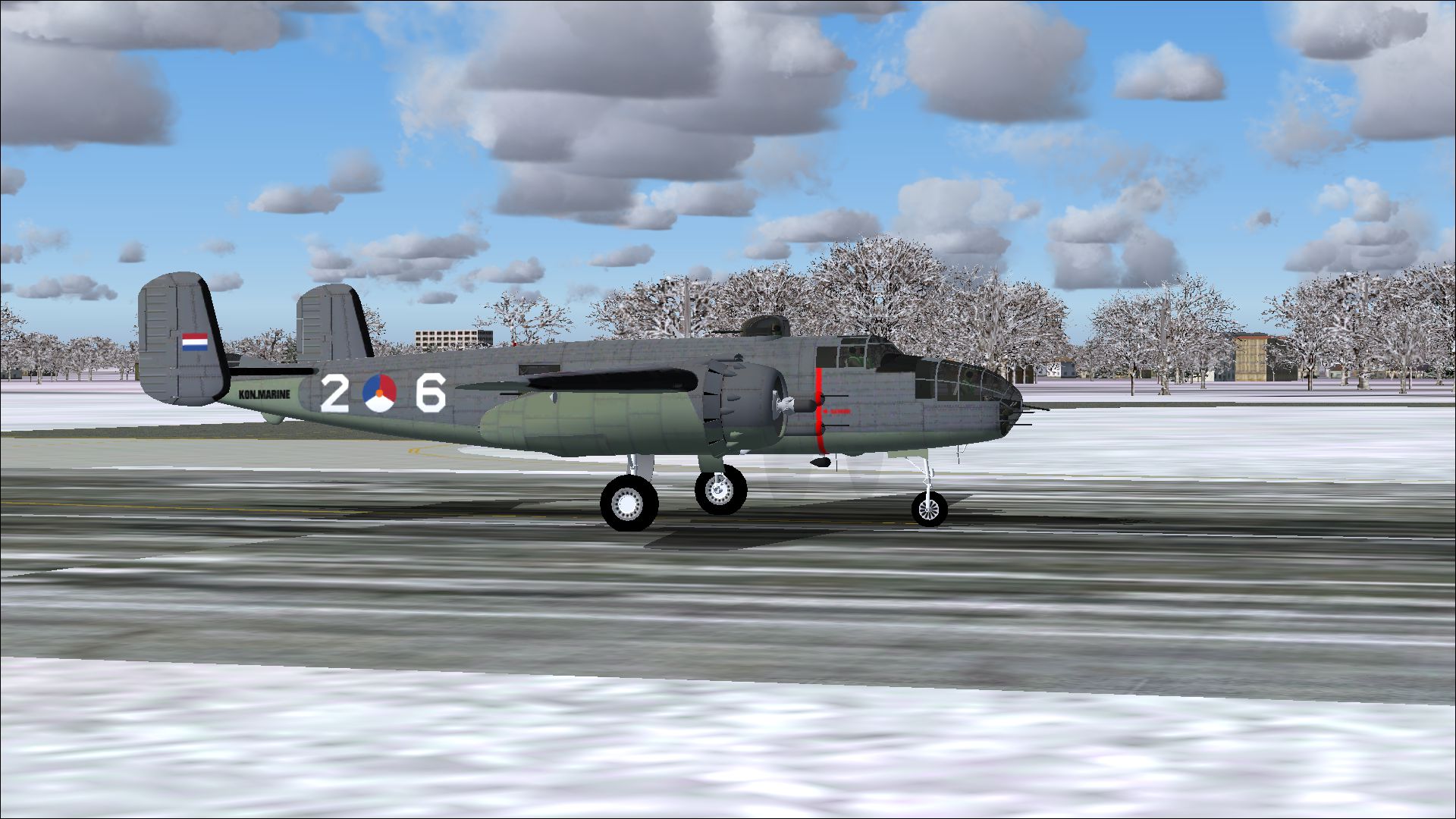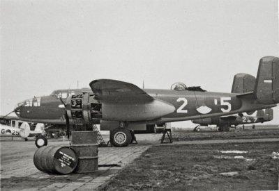With 9,816 aircraft built, the Mitchell is the most built bomber in the Second World War. Many variants have been built which, depending on the type, were used as bomber and / or heavily armed attack plane for ground targets. In 1942 Mitchells attack Tokyo by surprise from aircraft carriers. After the May-invasion of The Netherlands by the Germans, some dozens of naval personnel managed to fly to England with Fokker T.VIIIw torpedo bombers. This group was assigned to the RAF and became Dutch squadron 320, equipped with AVRO Ansons and later Lockheed Hudsons alongside of the Fokkers. In 1942 it was decided to replace these aircraft with Mitchells B-25C / D and Js, which became operational from the end of March 1943. This repaint package contains the regular RAF painting plus that was used during the invasion in June 1944. After the war, the MLD received a total of 25 former Mitchells from the RAF to rebuild the MLD. They were stationed at Valkenburg air base. Six and later another five were demolished for spare parts. Most Mitchells were part of the MLD fleet until the end of 1949. The last two were retired at the beginning of 1952. They were succeeded by the Lockheed Harpoon which was more suitable for the specific MLD tasks.