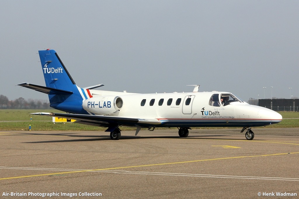 This Cessna Citation II is used by NLR since December 1993 and since 2014 by TU Delft as well. The aircraft is jointly owned and is named after Prof H.J. van der Maas, emiritus professor at the TU Delft. On one side it carries the livery of NLR and the other side of TU Delft.