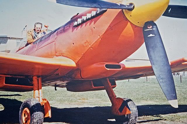 After WWII the Royal Netherlands Airforce took over 72 Spitfires from the RAF's war surplus, 35 fighters plus 3 two seat trainers were in service in Holland and 20 fighters in the Dutch East Indies. The rest have been used for ground instructions. From half 1946 till 1954 they were used by the Fighterschool at Twente Airbase and as fighter at Soesterberg ,Twente Airbases and the Dutch East Indies. From 1948 onwards the fighters in the Netherlands were replaced by Gloster Meteors, the first jet in the Dutch Airforce. First the aircraft had the RAF-scheme with Dutch roundels and the H-registration. In 1951 the have been repainted in silver and re-registered with 3W-. The H-28 became 3W-14. In 1954 the 3W-14 was transferred to Schreiner, painted orange registered PH-NFO and then be used as target tug from Texel Airfield. After a crash in June 1957 the aircraft was scrapped.